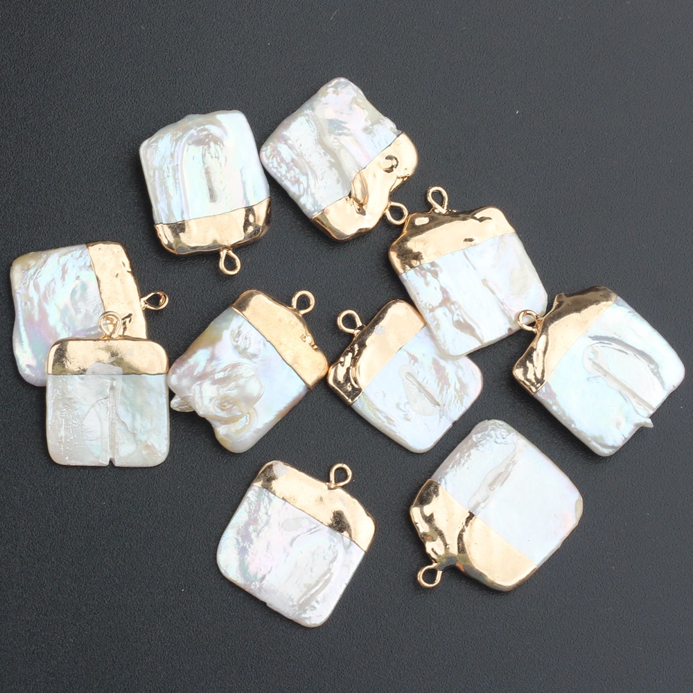 天然淡水パールバロック特殊形状ゴールドエッジ長方形シングルペンダント diy 手作り真珠素材アクセサリー