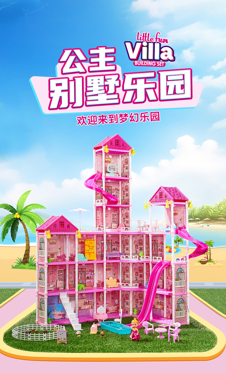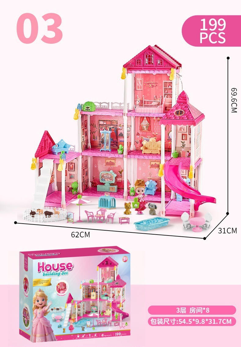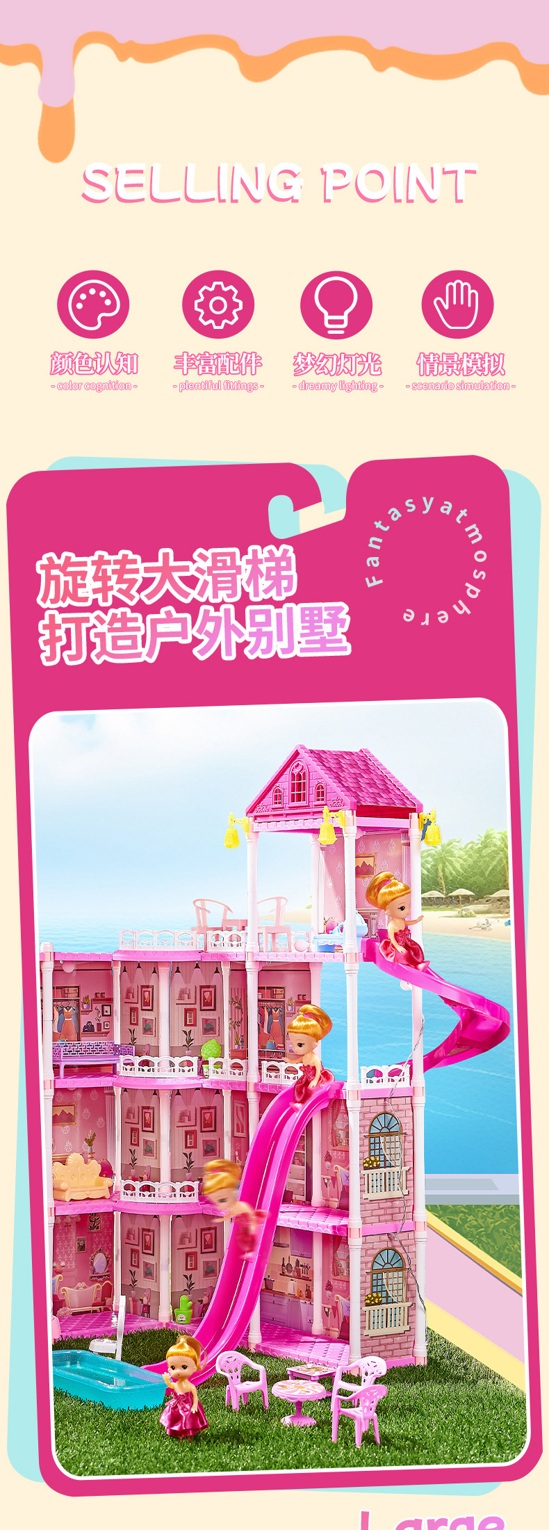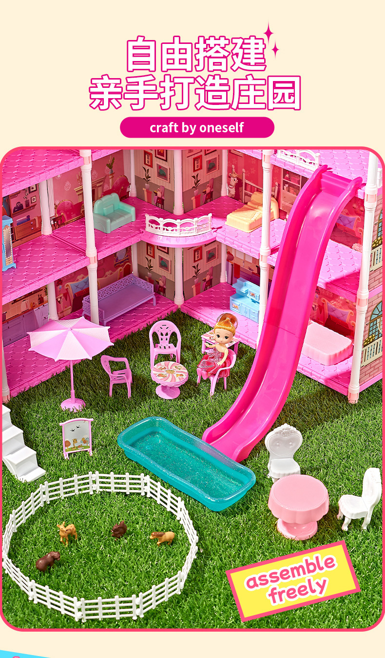 亚马逊DIY公主屋女孩过家家玩具娃娃屋城堡别墅女孩拼装房子跨境