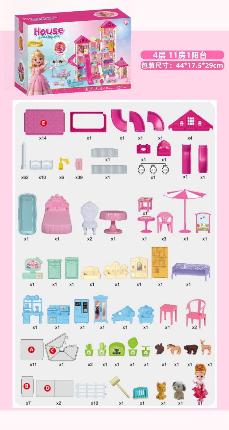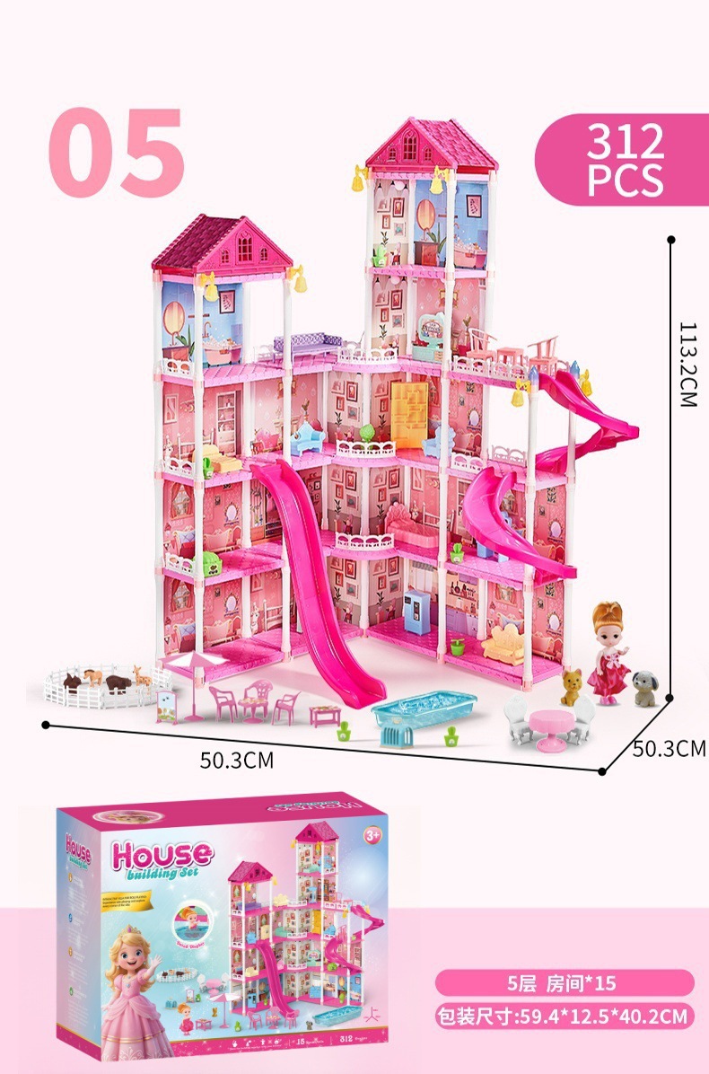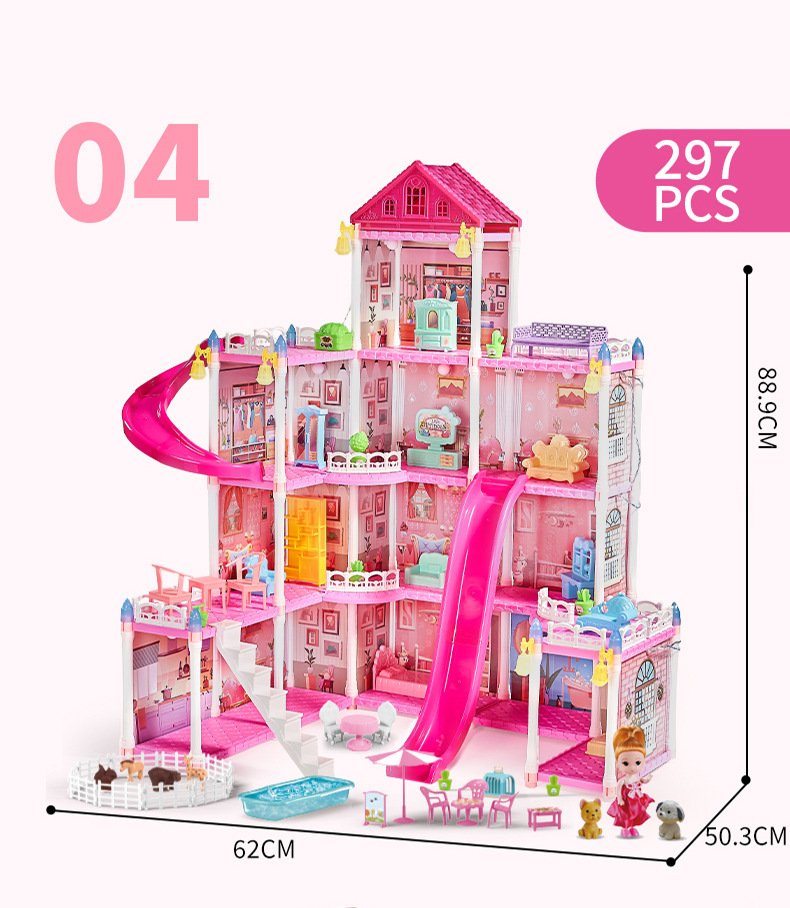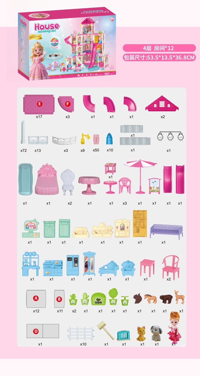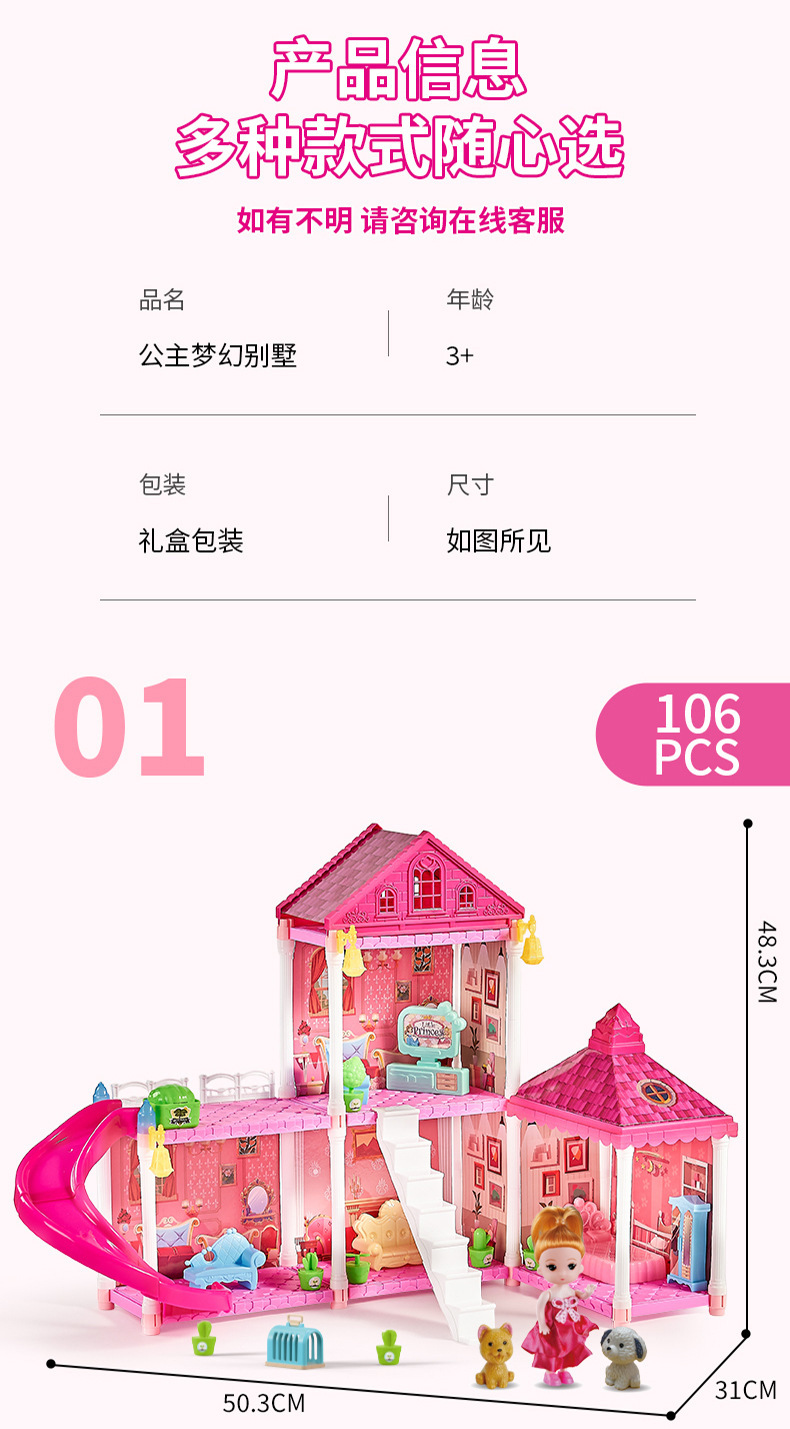 亚马逊DIY公主屋女孩过家家玩具娃娃屋城堡别墅女孩拼装房子跨境