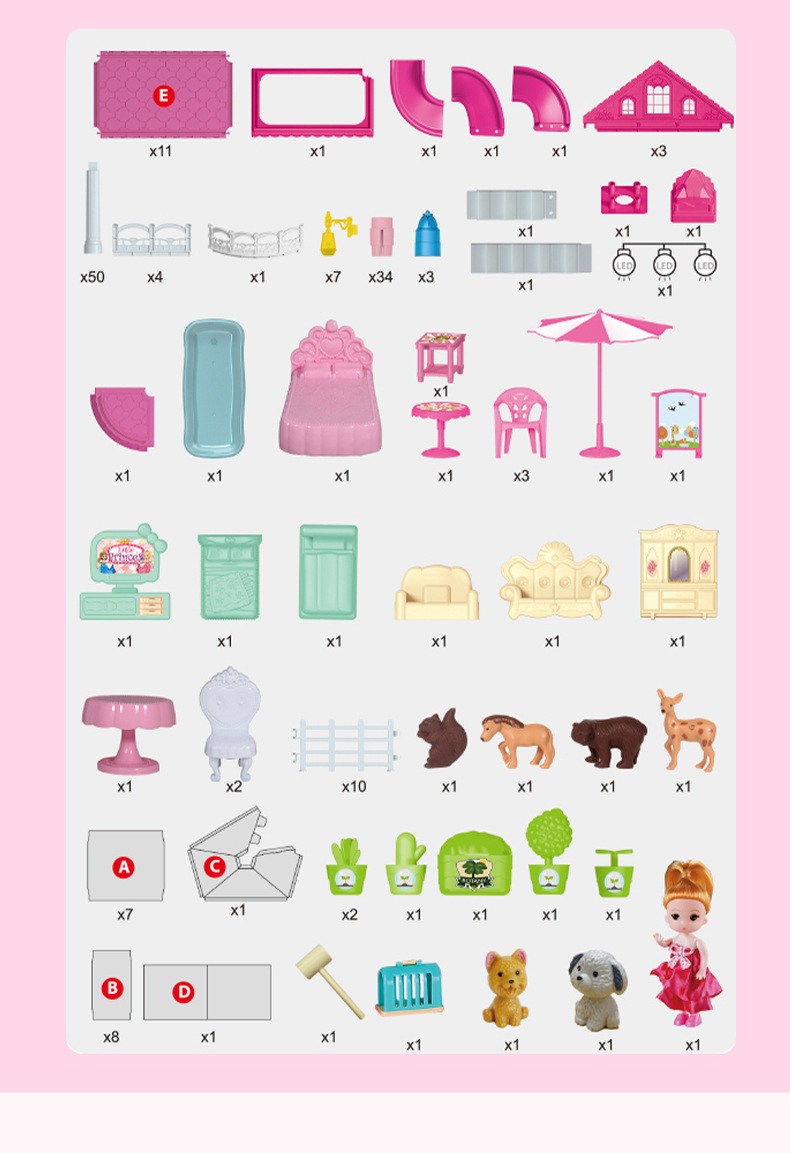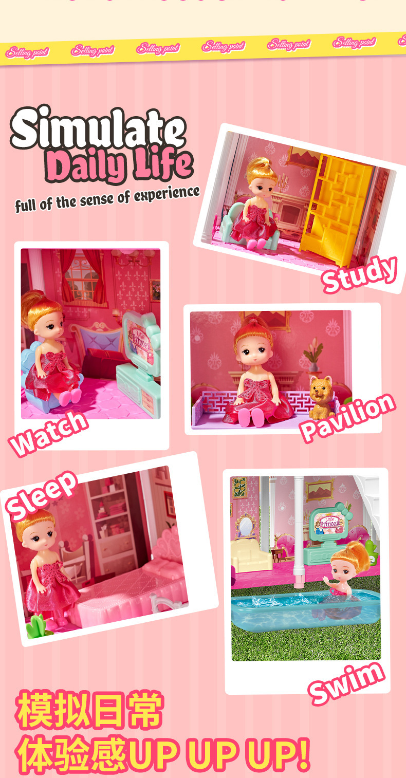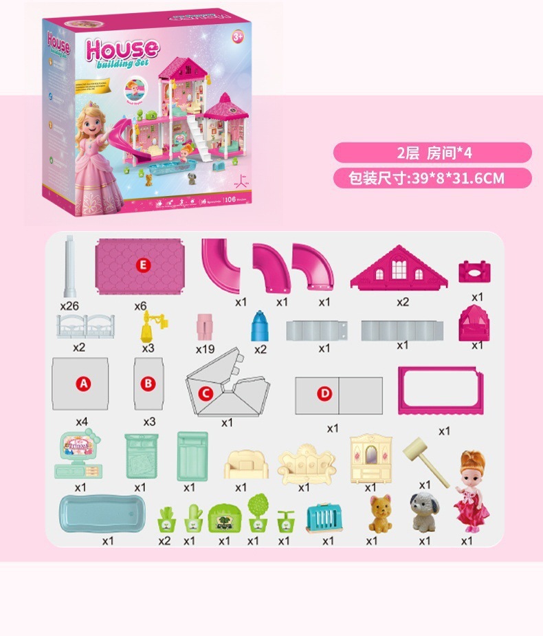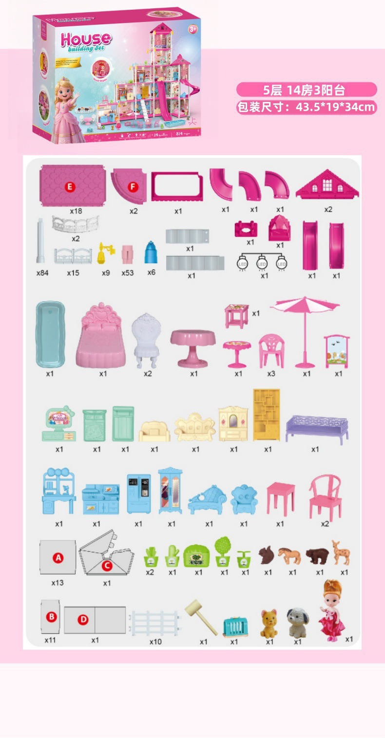 亚马逊DIY公主屋女孩过家家玩具娃娃屋城堡别墅女孩拼装房子跨境