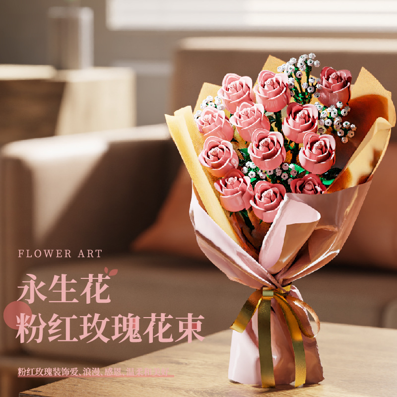 国境を越えた互換性のあるレゴ ピンク ローズ ビルディング ブロック フラワー ギフト 男の子と女の子へのギフト ロマンチックなバレンタインデーのギフト