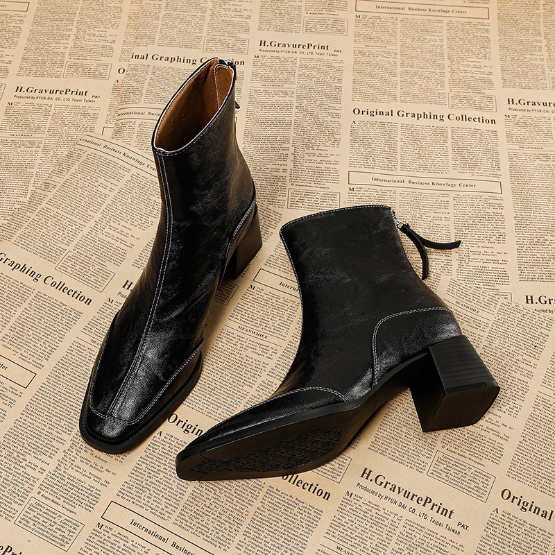 女性のためのスクエアトゥ太いヒールスリムブーツ2025新しい秋と冬の多用途マーティンブーツ気質ファッショナブルなミッドヒールショートブーツ
