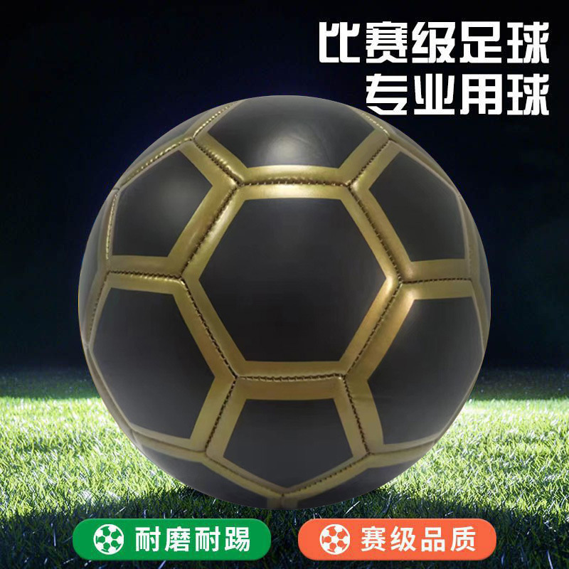 メーカーは、大人、小中学生向けのNo.3、No.4、No.5のPVCミシン縫いプロ競技トレーニング用ブラックゴールドスタイルサッカーボールを供給しています。