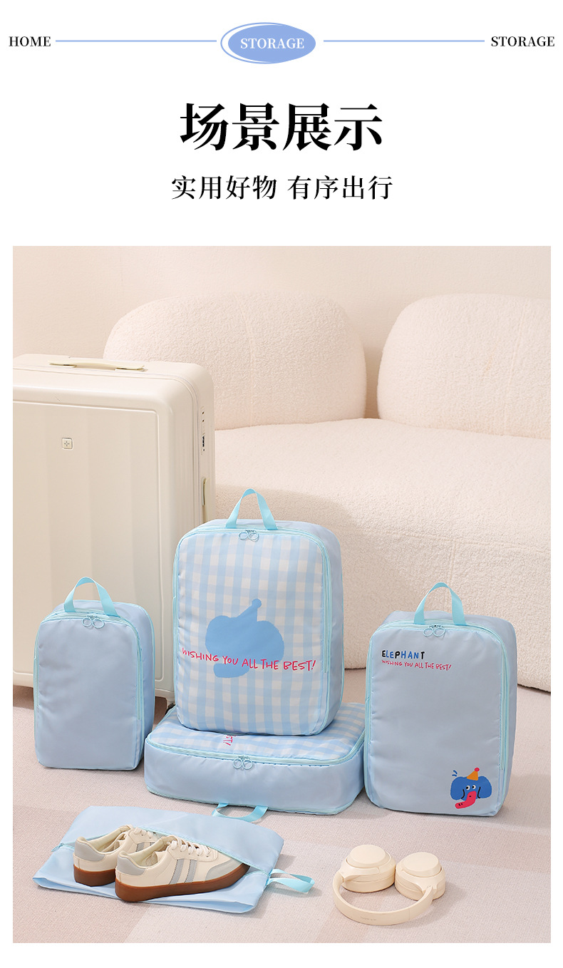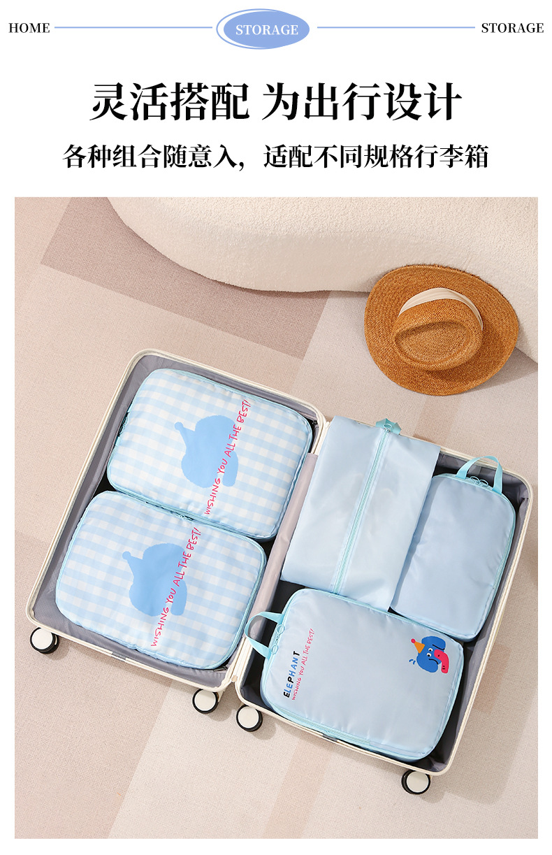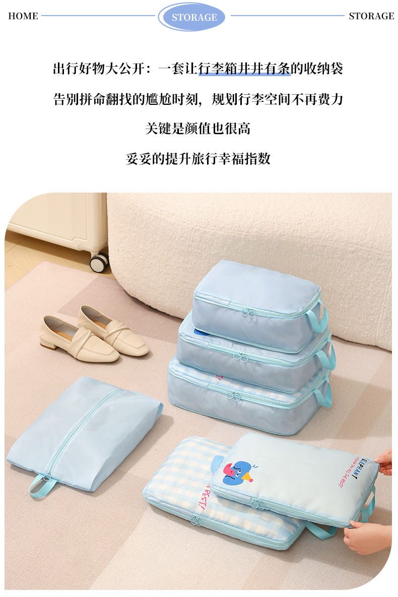 旅行衣類収納袋セット下着靴分注袋出張スーツケース化粧品収納バッグ7点セット