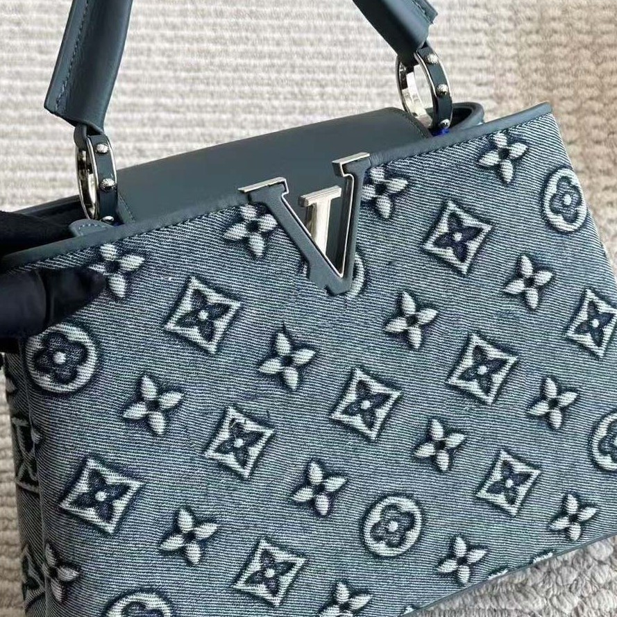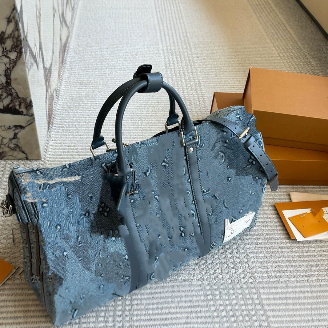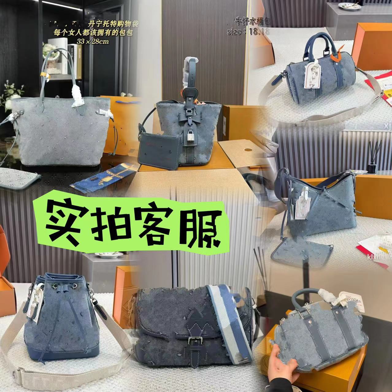 新款真皮波士顿丹宁牛仔30枕头包情侣款手提包旅行包单肩潮斜挎包