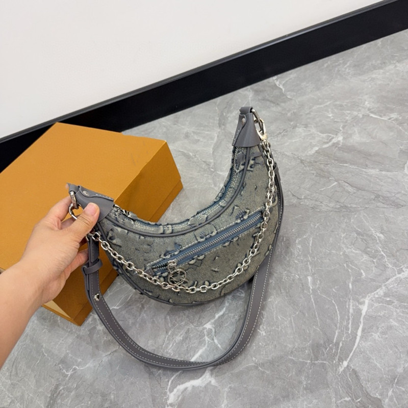 新しいハイエンドのウォッシュデニムエンボス加工のレディースバッグ、多用途のトレンディなシェルバッグ、ピーレディバッグ、多用途のシングルショルダークロスボディバッグ