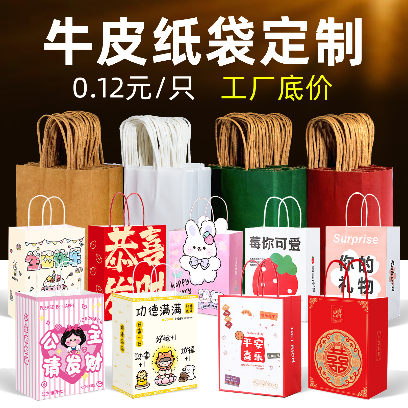 新年の牛革紙袋、お土産用ハンドバッグ、誕生日プレゼント包装袋、祝福の春節ギフトバッグ