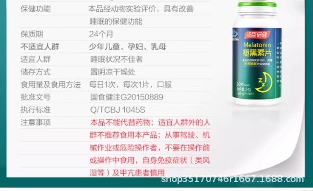 汤恩倍牌褪黑素睡眠片改善睡眠正品蓝帽认证正品保健食品批发代发