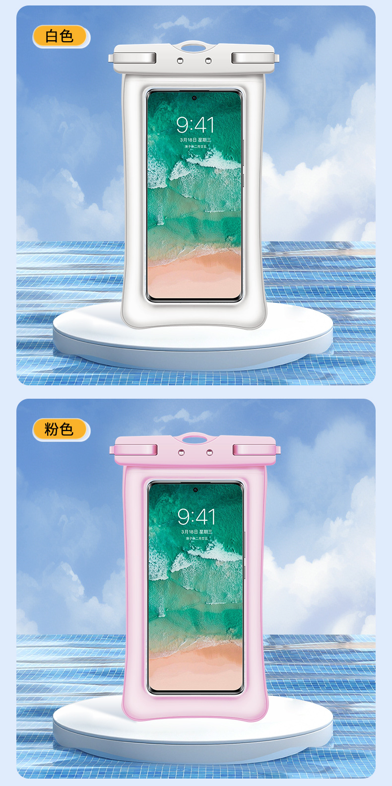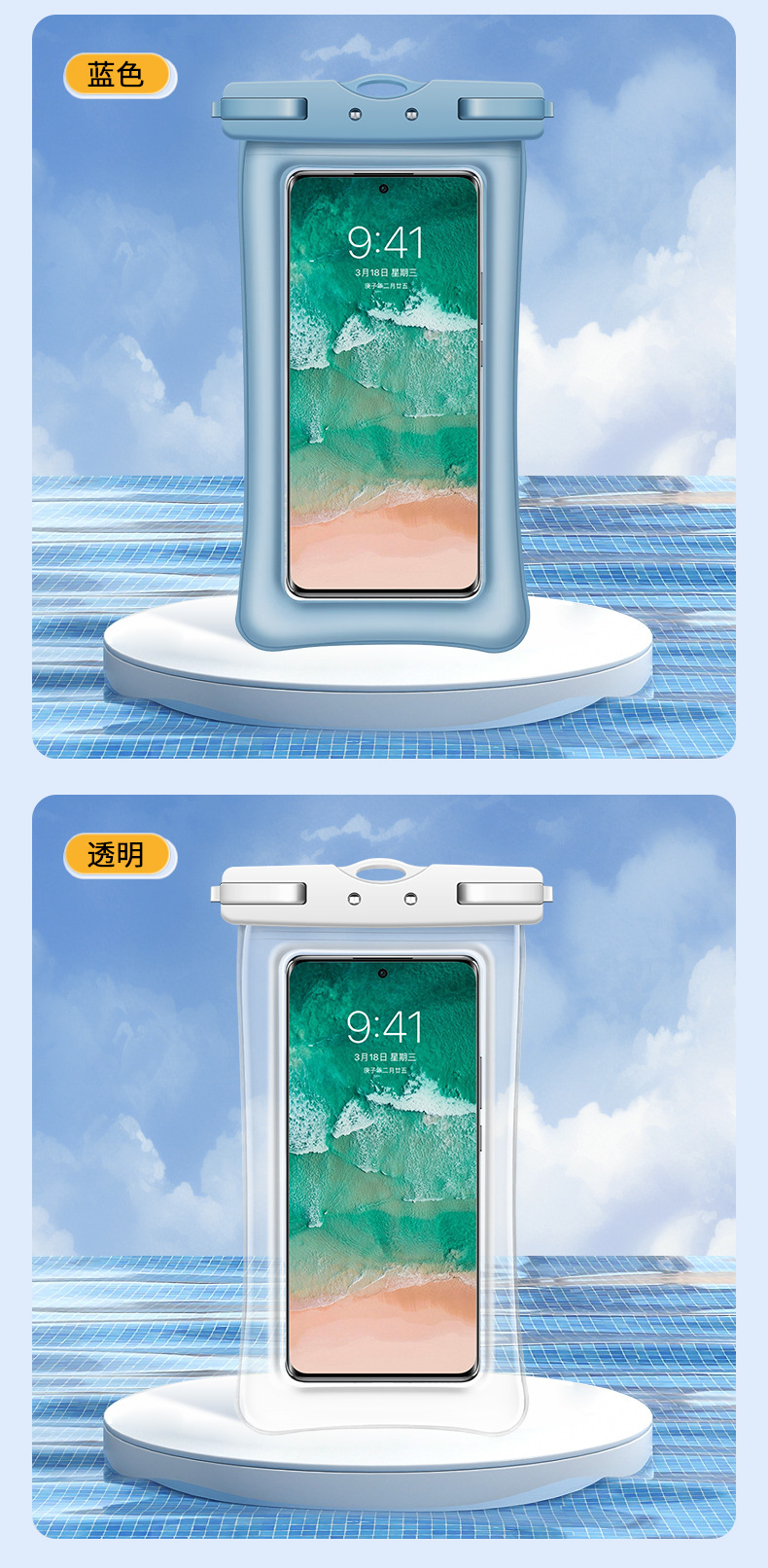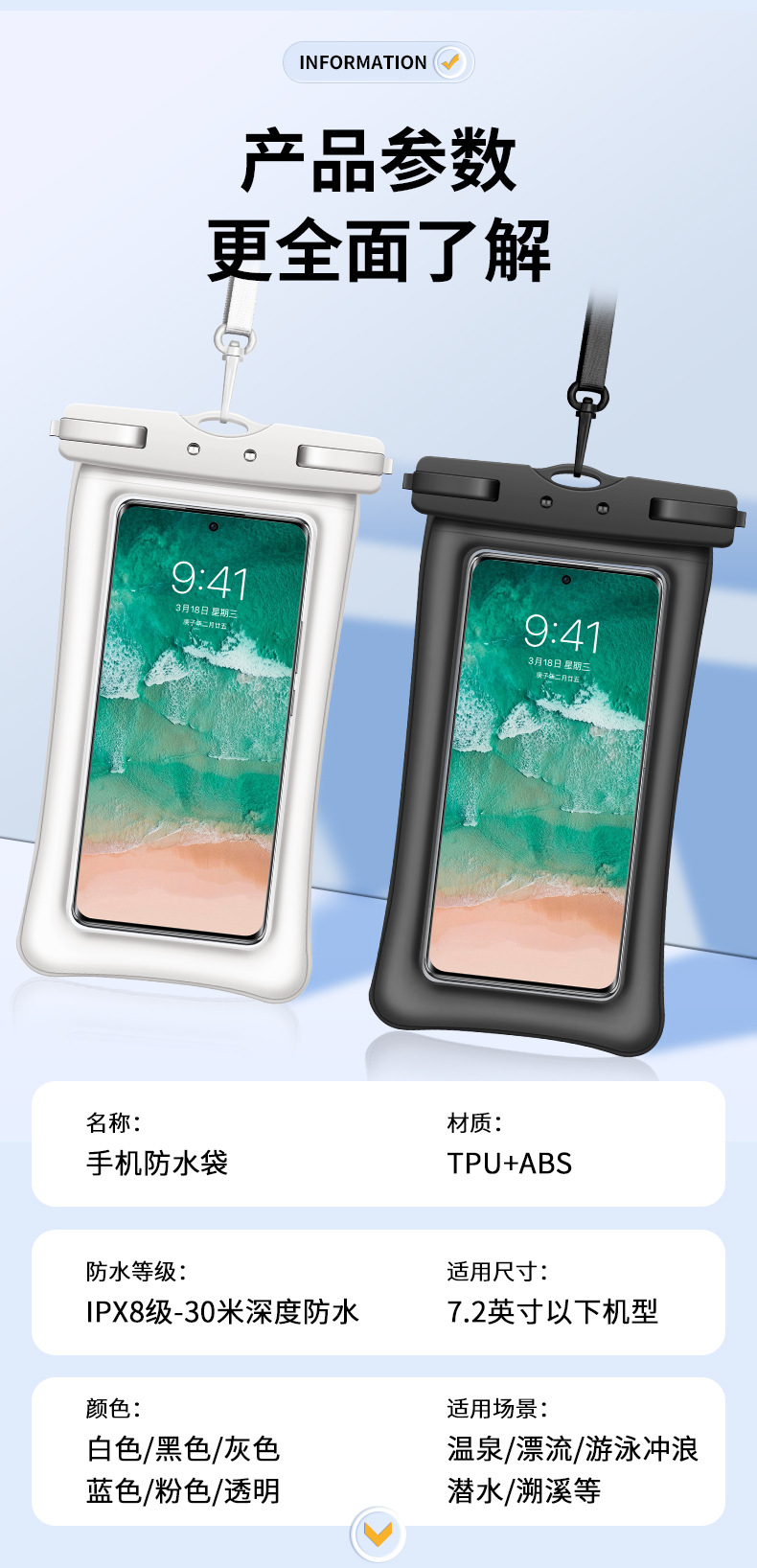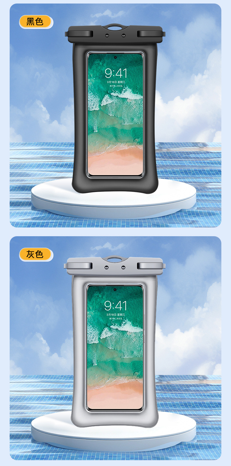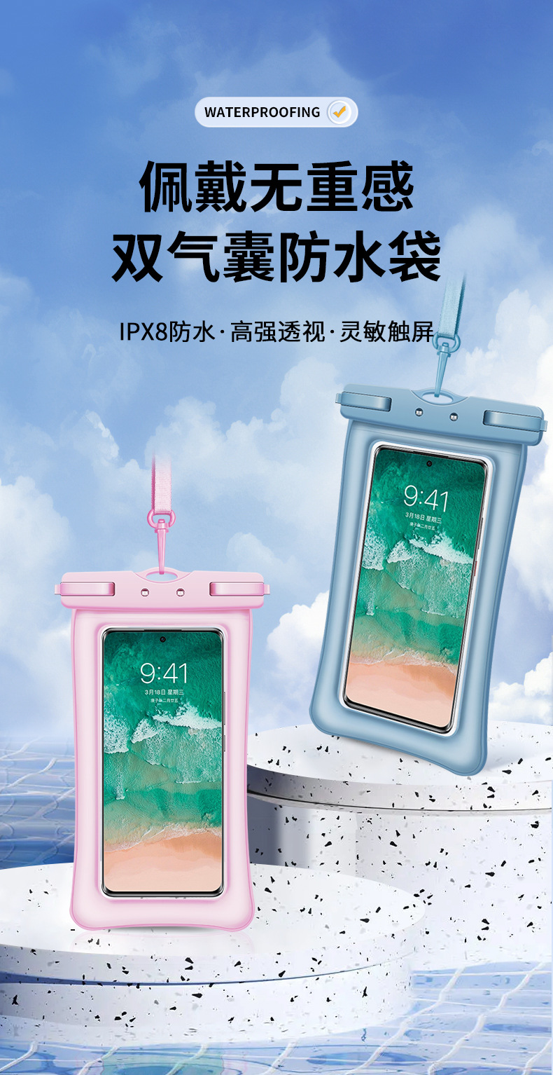 TPU环保Q纹双气囊手机防水袋游泳温泉漂流拍照潜水透明手机防水套