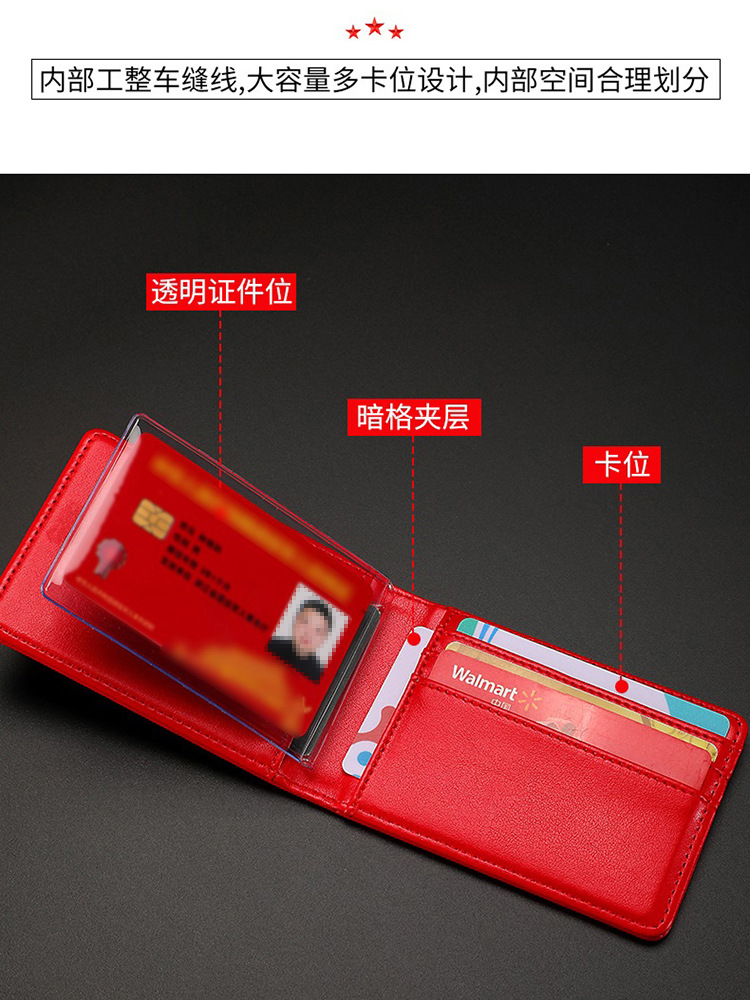 横款新款红色真皮尤待证证件套卡包耐用二层牛皮证件保护套国潮