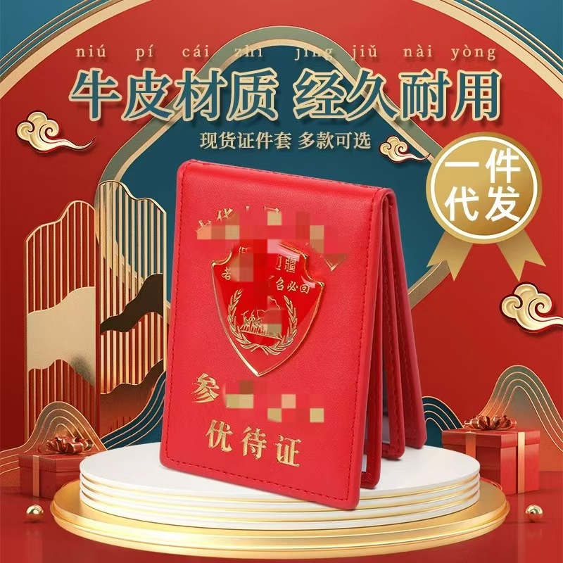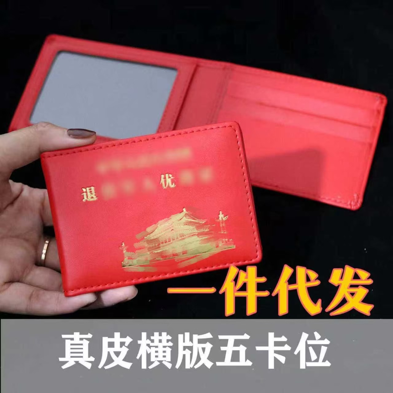 厂家批发优抚证卡套退役老兵工作证皮套定购卡包真牛皮卡夹保护套