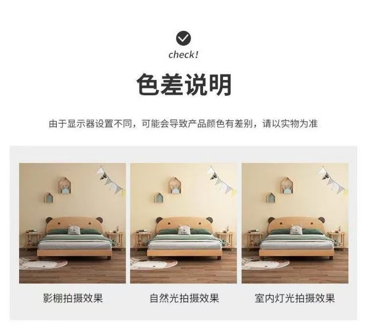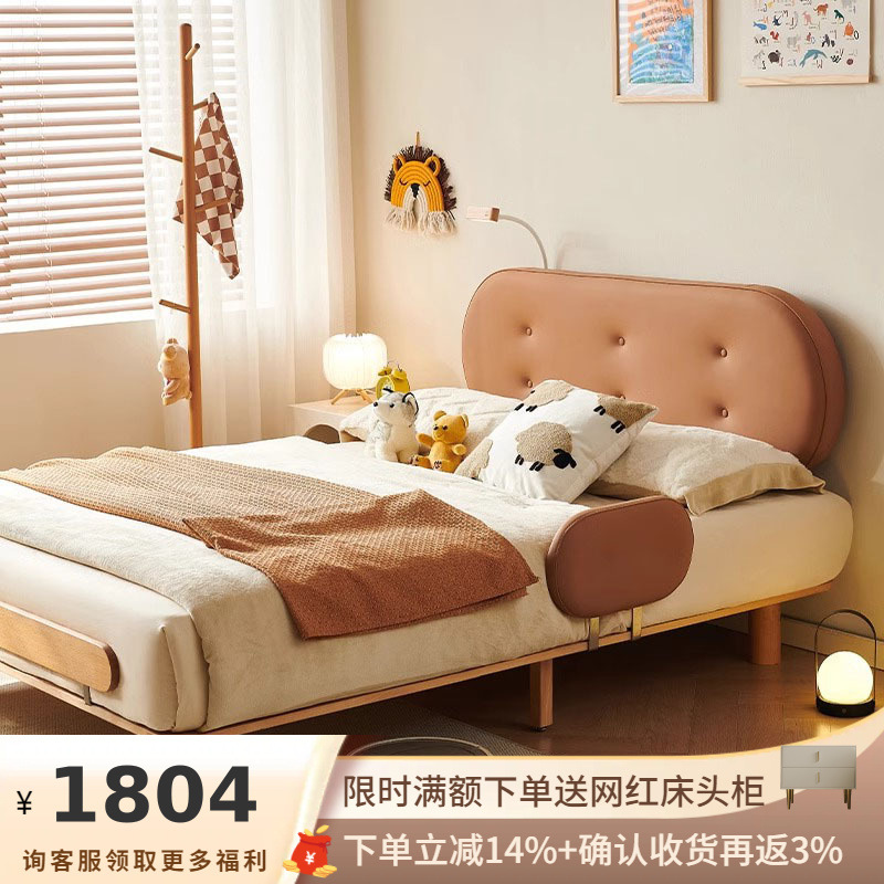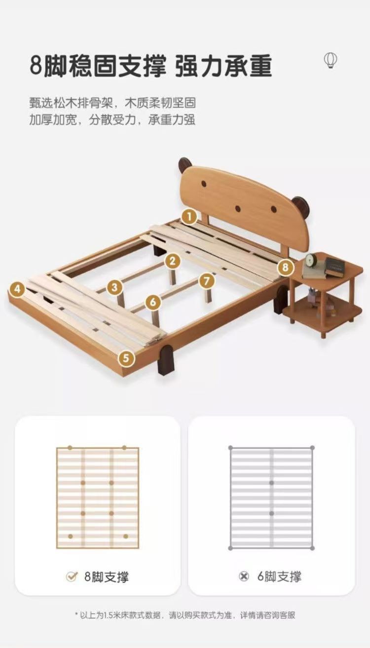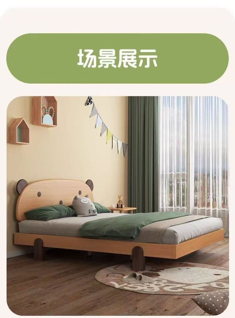 实木儿童床青少年卧室小孩小熊储物1.2榉木单床北欧1.8实木双人床