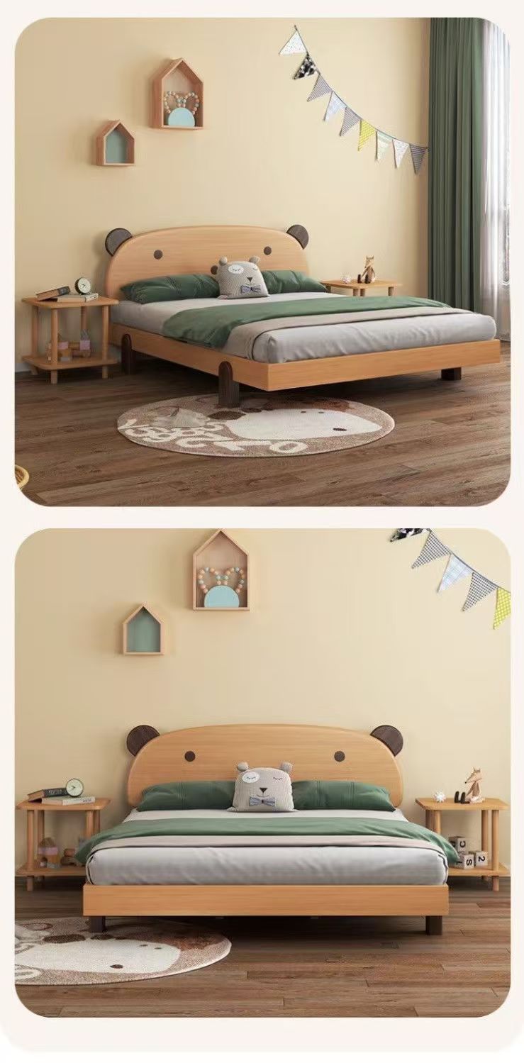 子供用木製ベッドモダンな子供用ベッドホームシンプルな漫画ダブルベッドクマブナ北欧ベッドサイド無垢材寝室