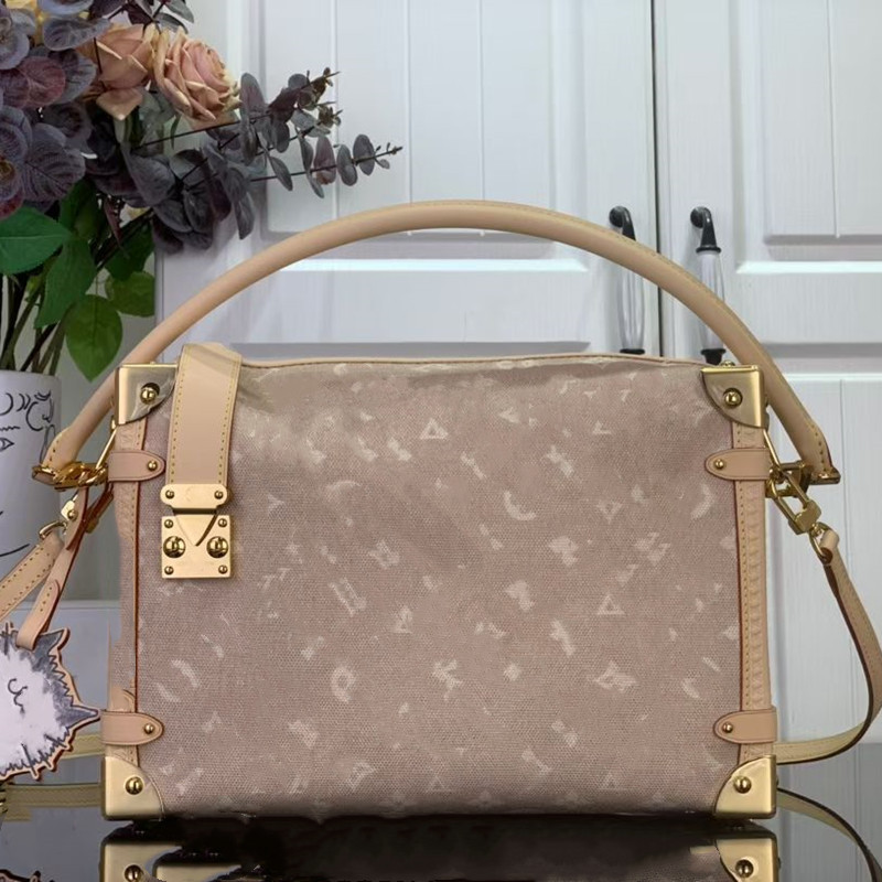 秋冬新款大容量盒子杏色布大号软箱子情侣款潮牌单肩包百搭斜挎包