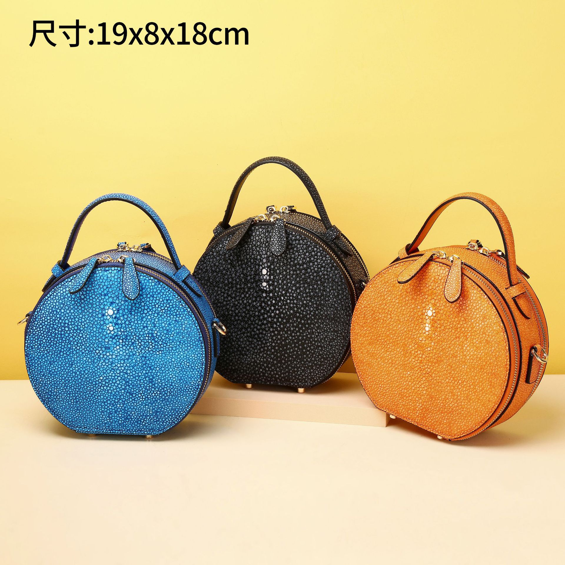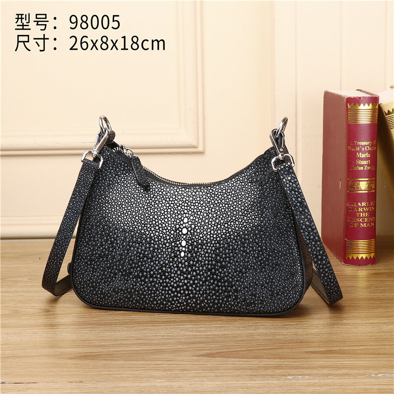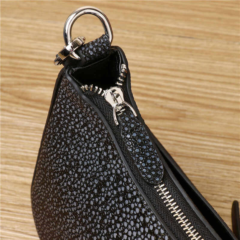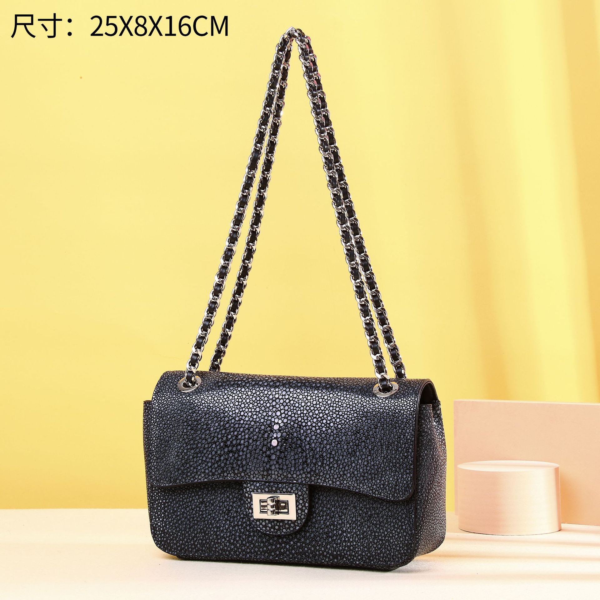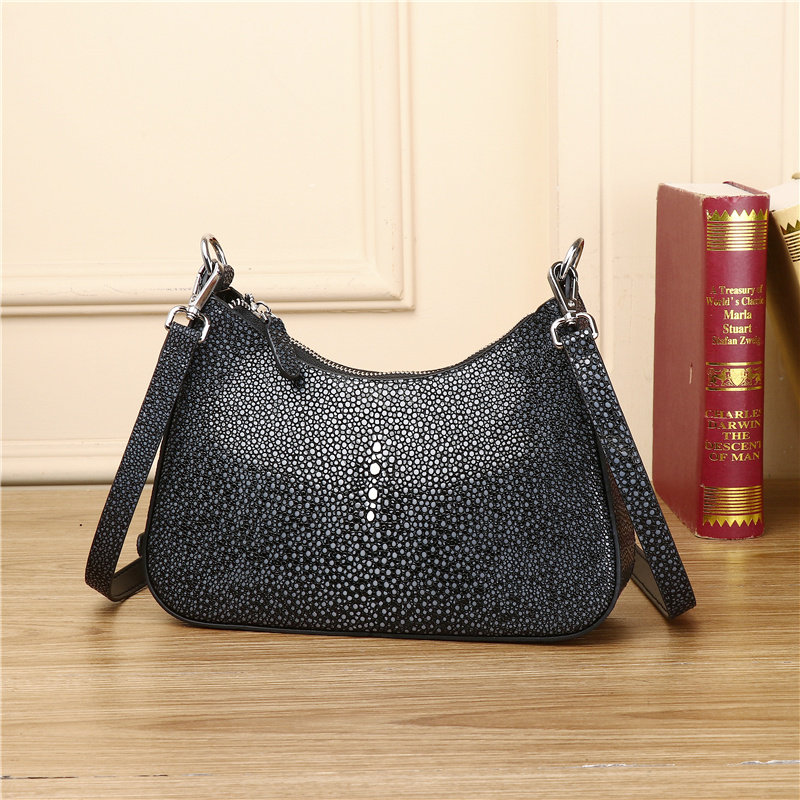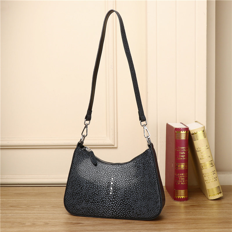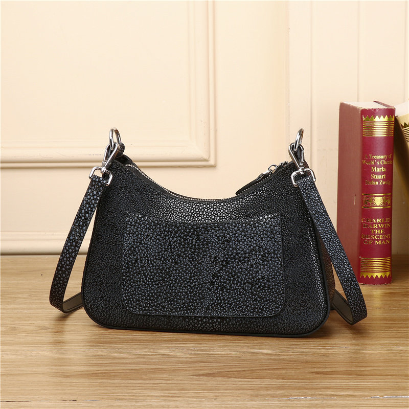 新款真皮女包手提包珍珠鱼皮牛角包大容量时尚小方包潮百搭斜挎包