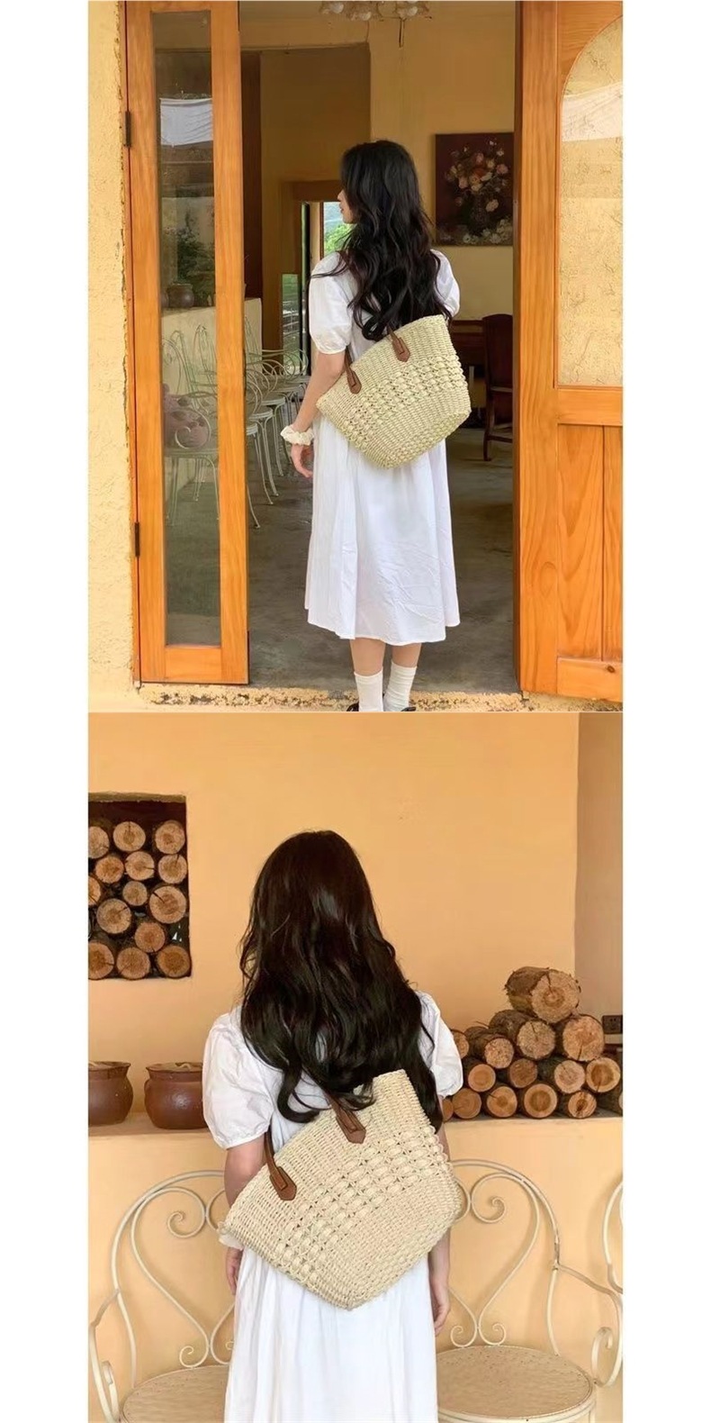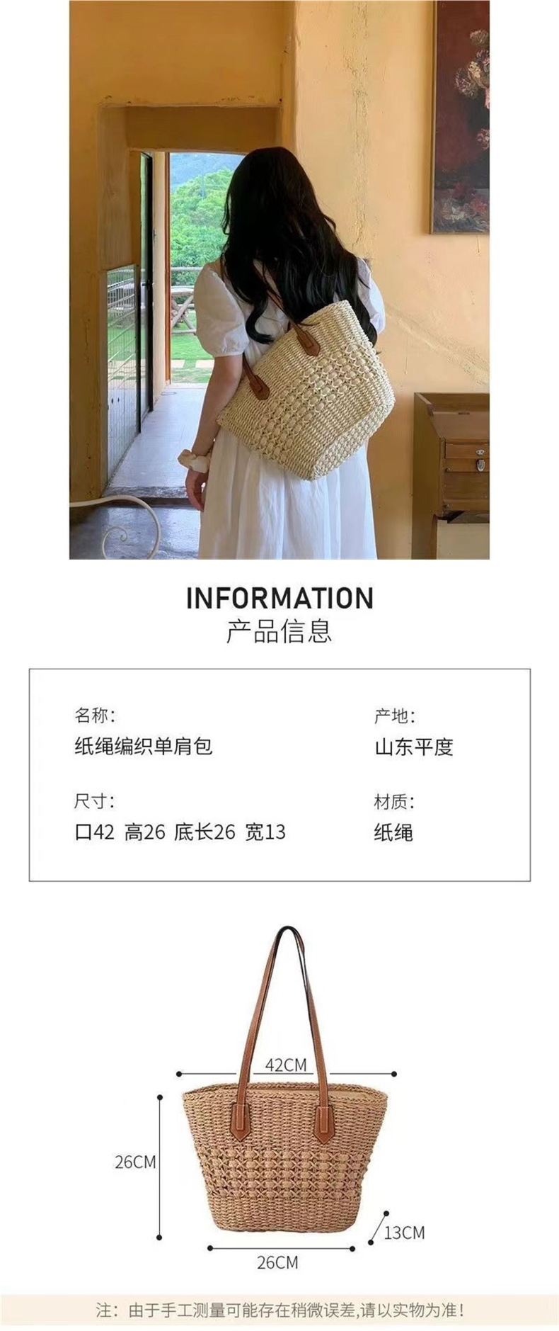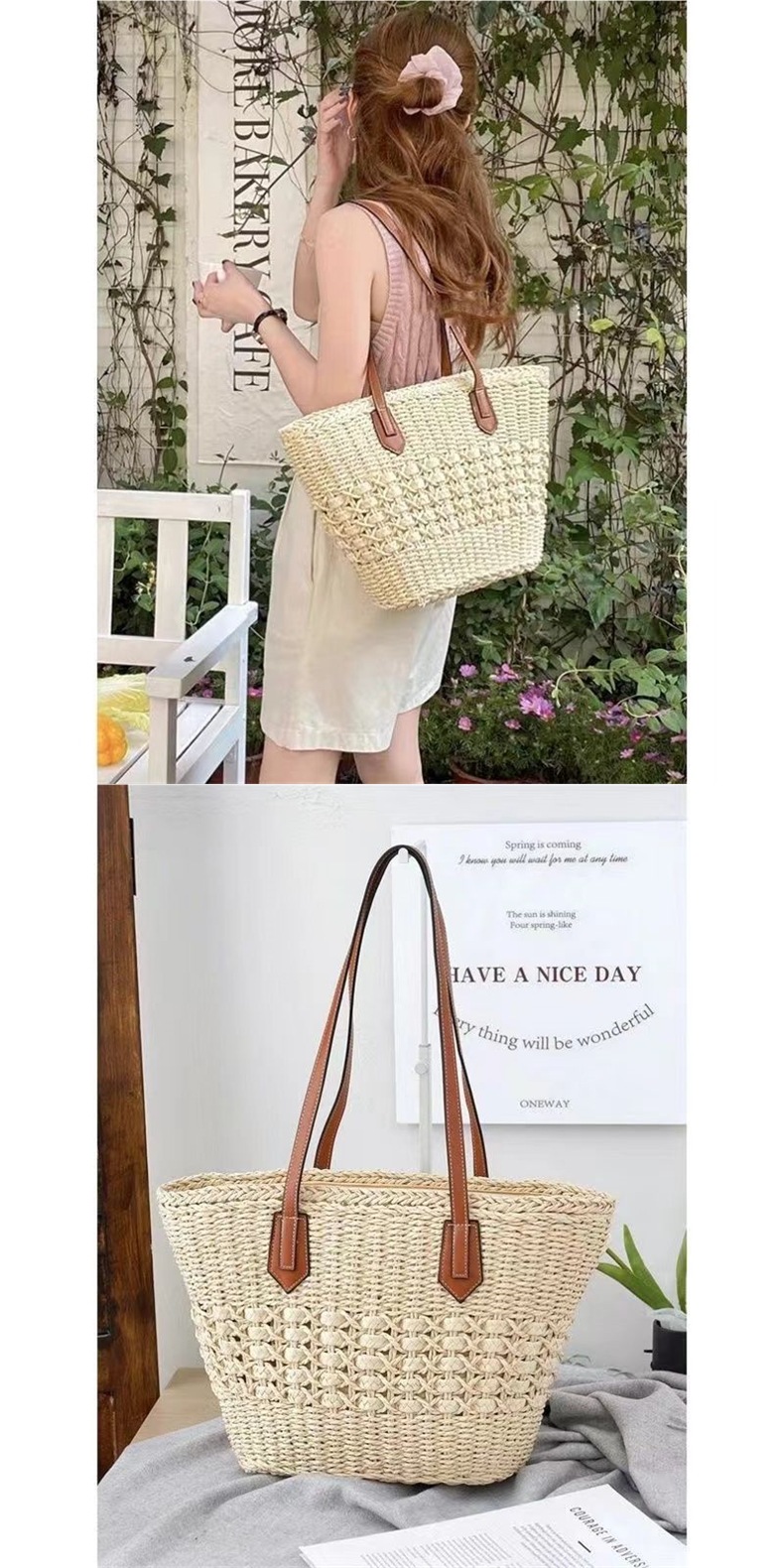 フォレストスタイル文学手織り大容量野菜かごバッグ夏の新しい多用途カジュアル通勤トートストローバッグ