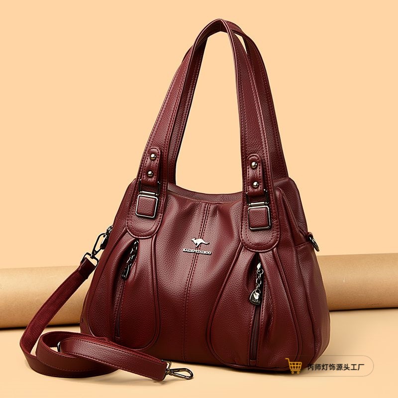 新しい 2025 本革ママ中年女性のバッグレディースハンドバッグ大容量ソフトレザー雰囲気シングルショルダークロスボディバッグ