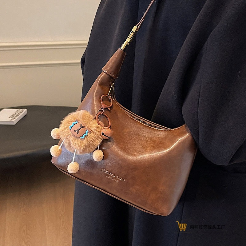 高級質感メイラードハンドバッグレディース2024秋レトロ質感ショルダーバッグ通勤クロスボディバッグ