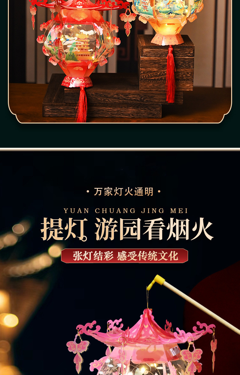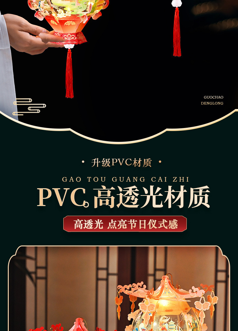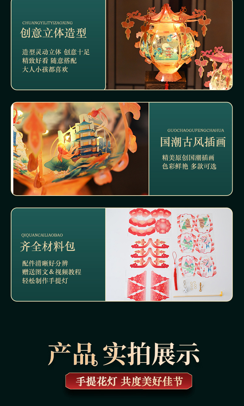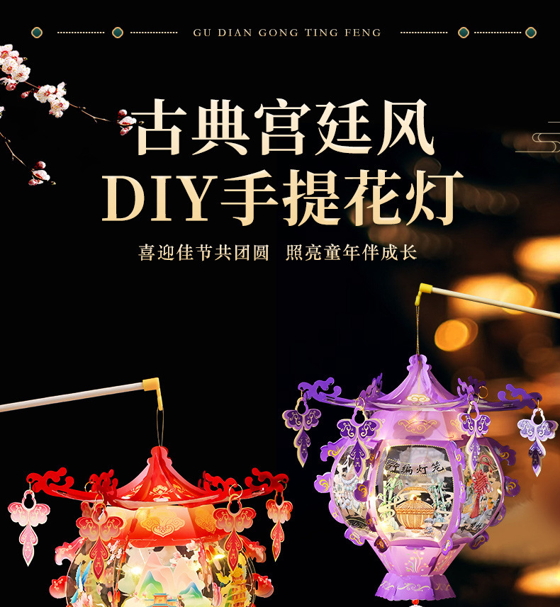 中秋节灯笼PVC儿童手提发光花灯手工diy材料包古典宫廷风立体宫灯