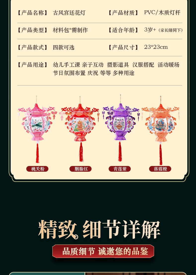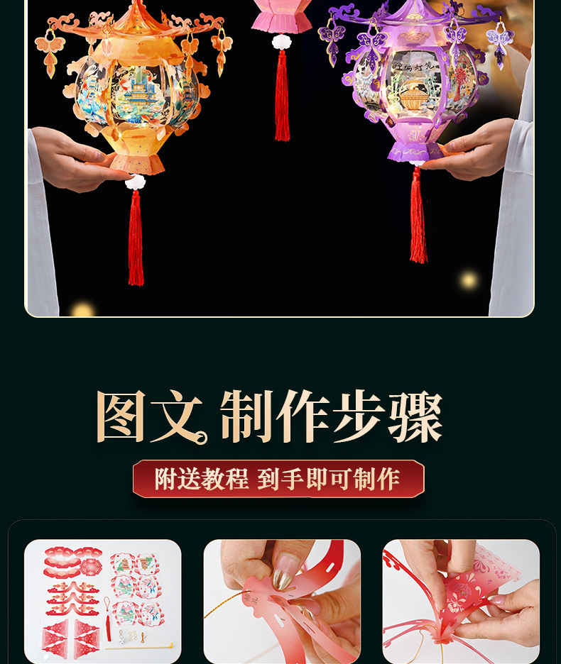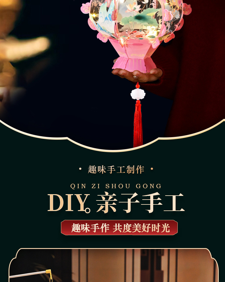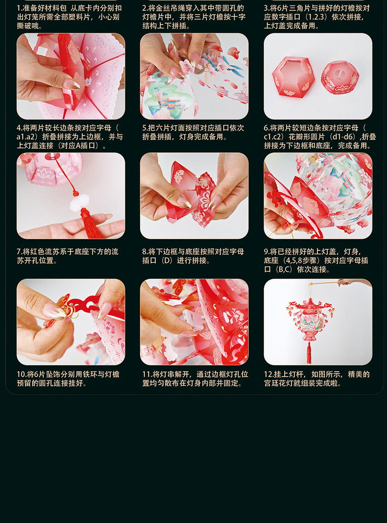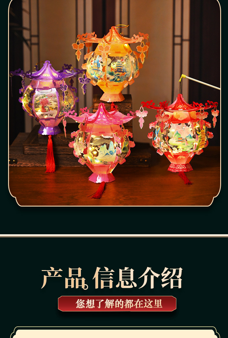 中秋节灯笼PVC儿童手提发光花灯手工diy材料包古典宫廷风立体宫灯