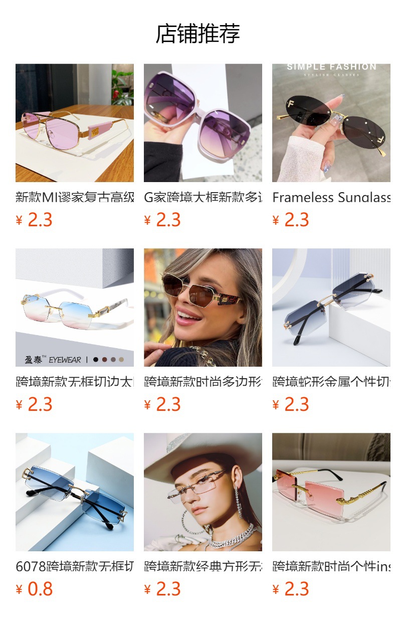クロスボーダーファッション新しいフレームレスサングラスコピー、ファッショナブルなストリート写真家が推奨するエッジカットサングラス2371