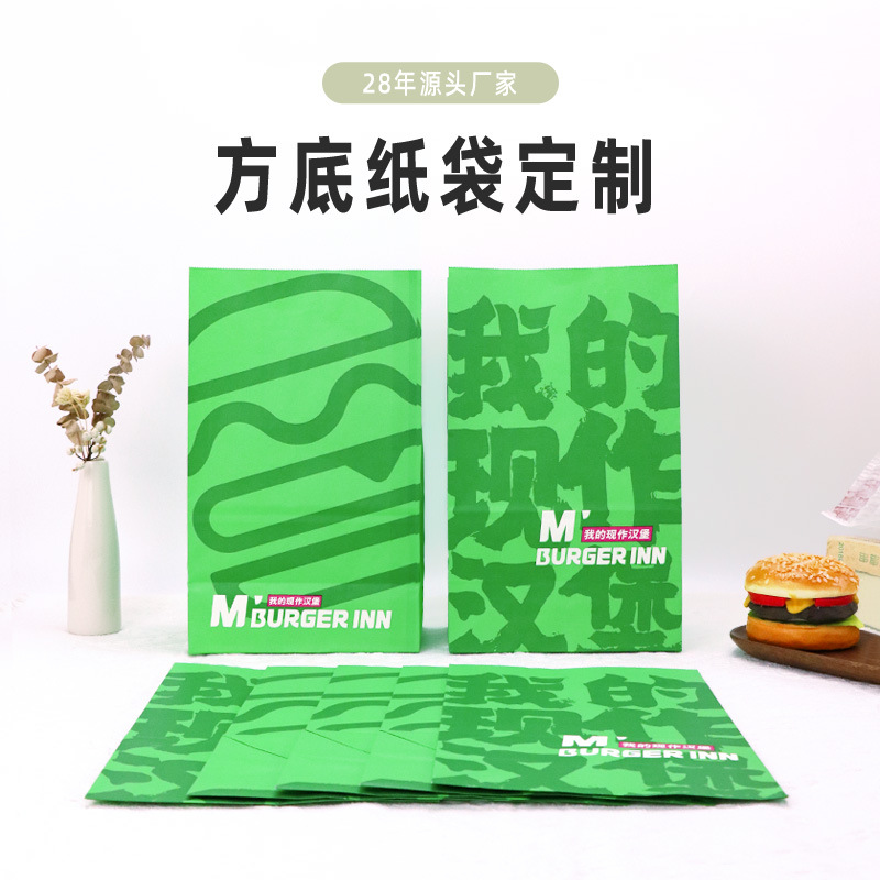 ハンバーガークラフト紙包装袋、揚げ物テイクアウト袋、フライドチキンチキンステーキ包装袋、厚手のベーキング角底袋卸売