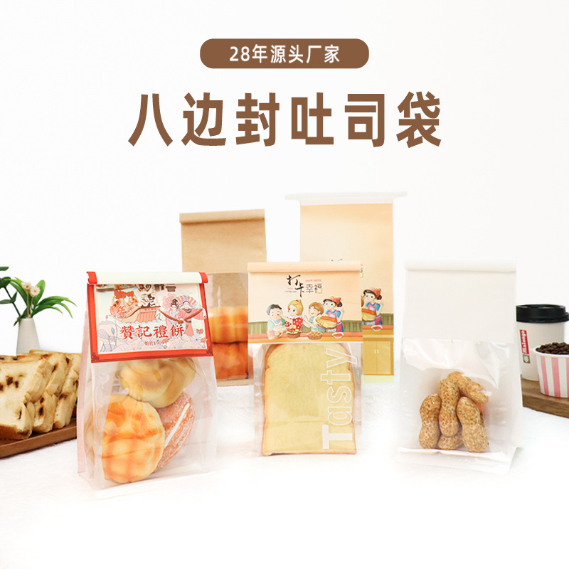 窓付き焼き菓子密封袋、透明トーストパン、白クラフト紙袋、ワイヤーリングセルフシールパン袋
