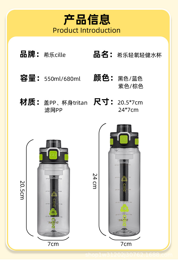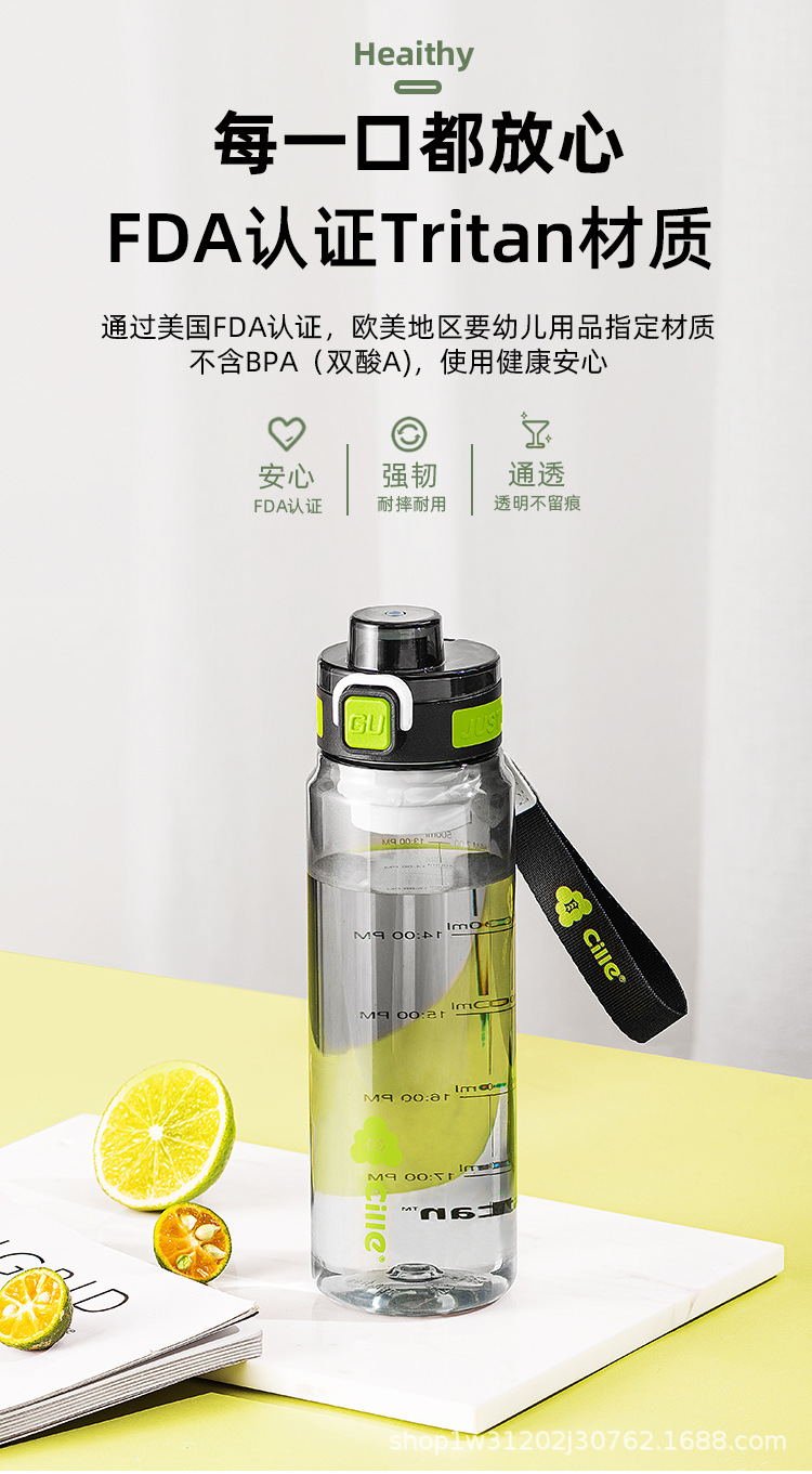 新款Tritan运动水杯户外防摔大容量水杯学生耐高温便携高颜值水杯