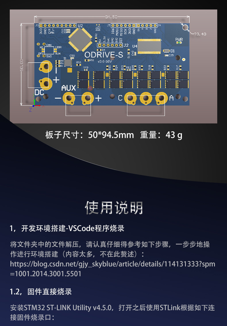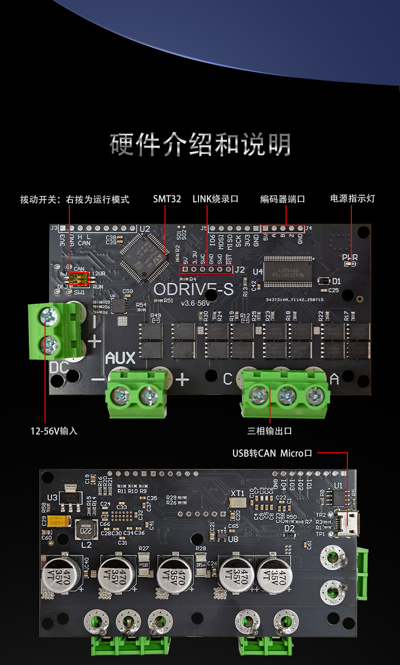 ODrive-S_V3.6-FOC-BLDC サーボ シングル モーター コントローラー