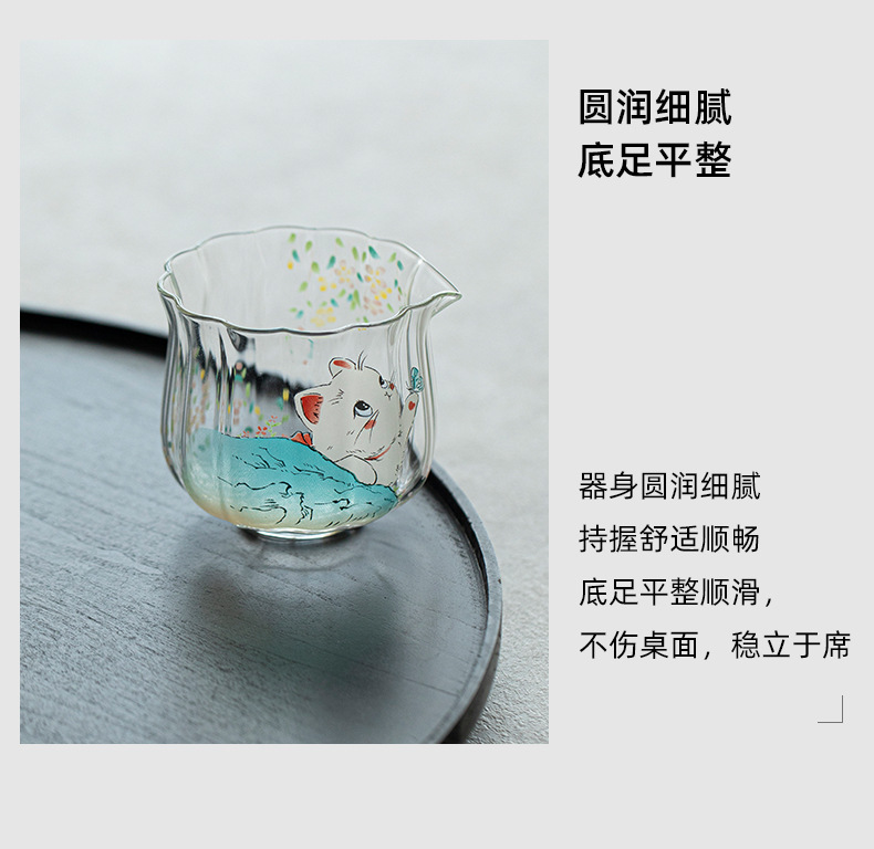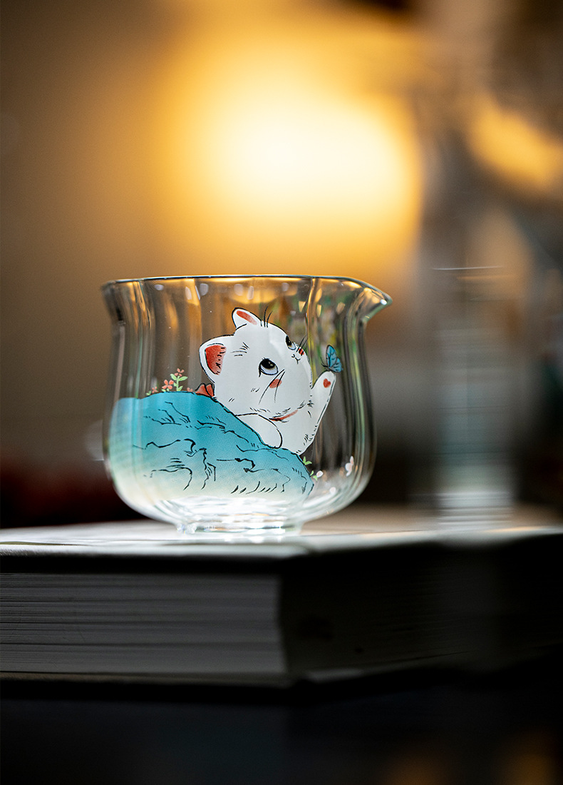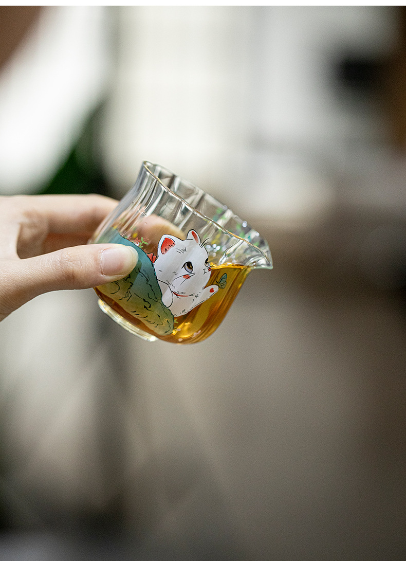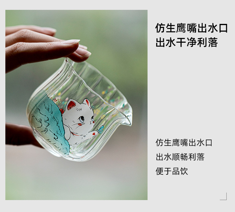 物心集小清新可爱小猫咪公道杯耐高温玻璃公杯小号分茶器匀杯日式