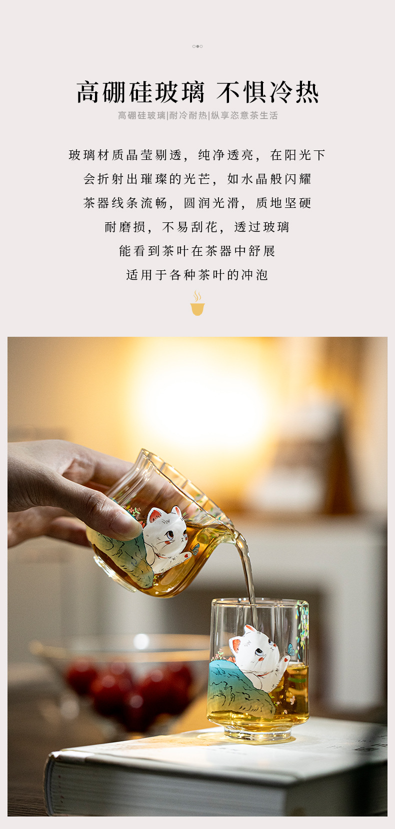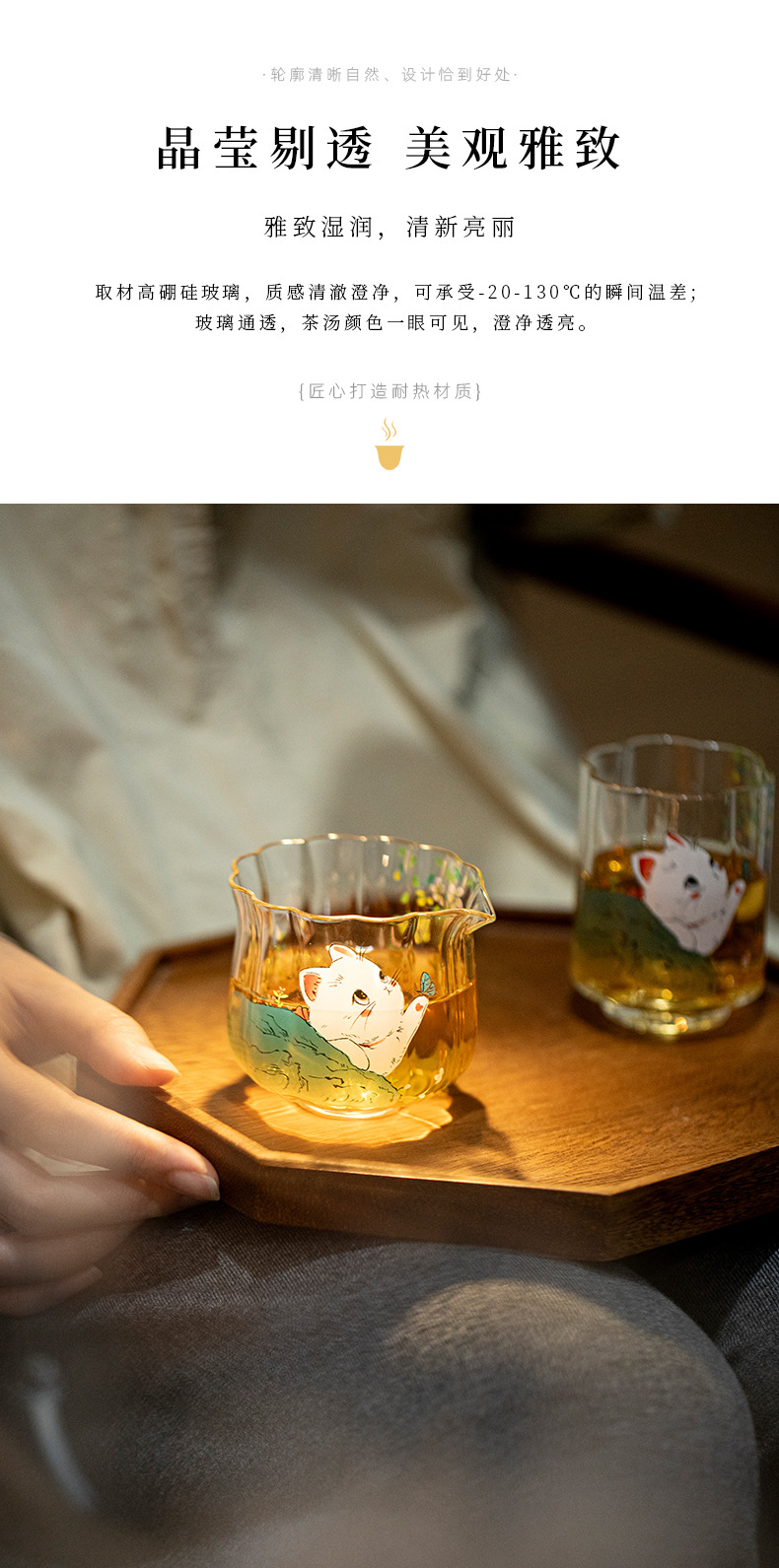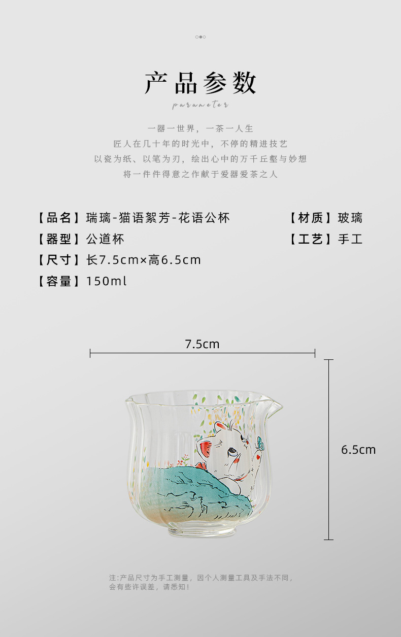 物心集小清新可爱小猫咪公道杯耐高温玻璃公杯小号分茶器匀杯日式