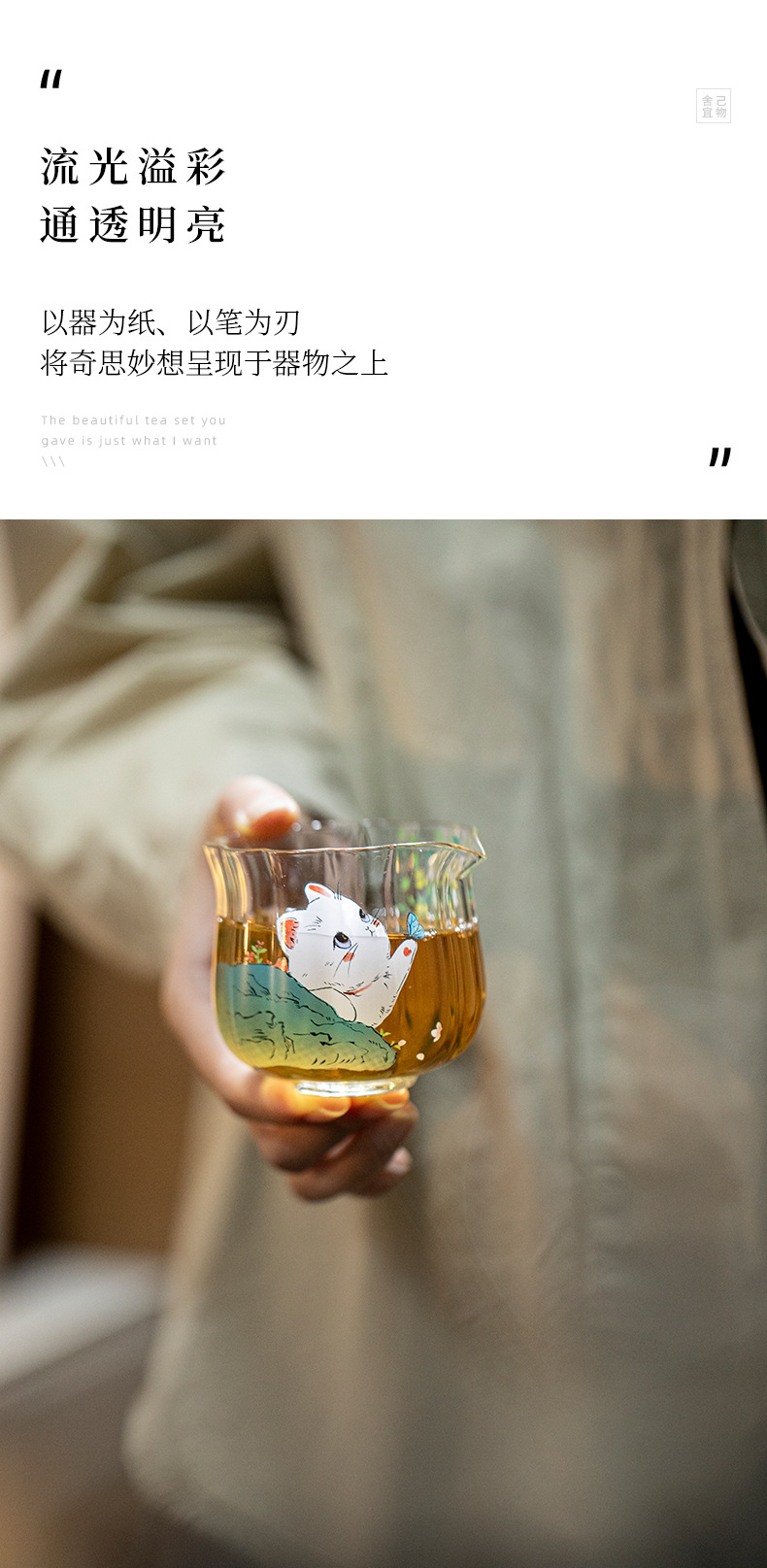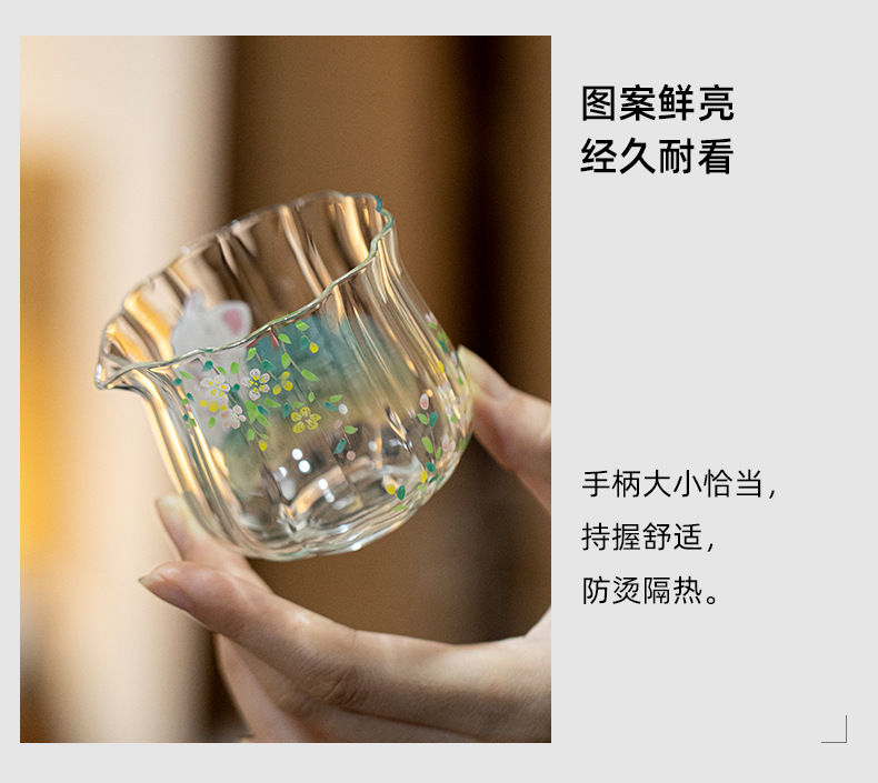 物心集高硼硅耐热玻璃公道杯手工贴花女士功夫茶具茶海分茶器匀杯