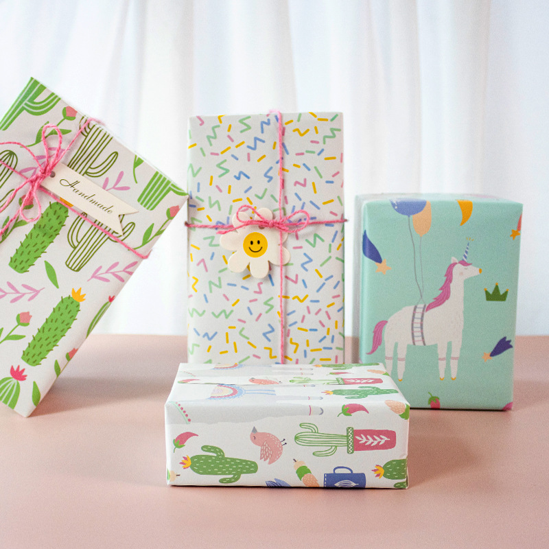 漫画ギフト包装紙insかわいい子供誕生日プレゼント紙幼稚園diy手作り紙色紙花紙