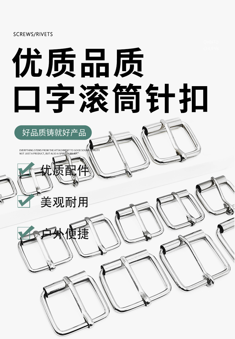 箱包服饰五金针扣 3.8线粗铁质针通扣包带金属滚筒针扣调节扣配件