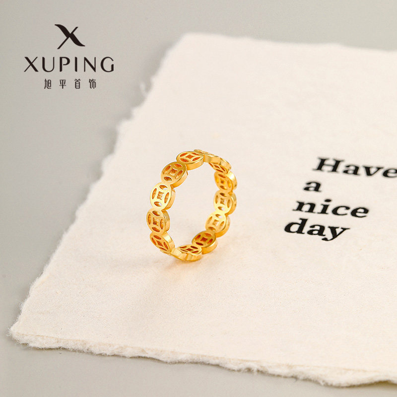 旭平镂空铜钱戒指不锈钢镀24k色简约仿金色轻奢气质指环易搭手饰