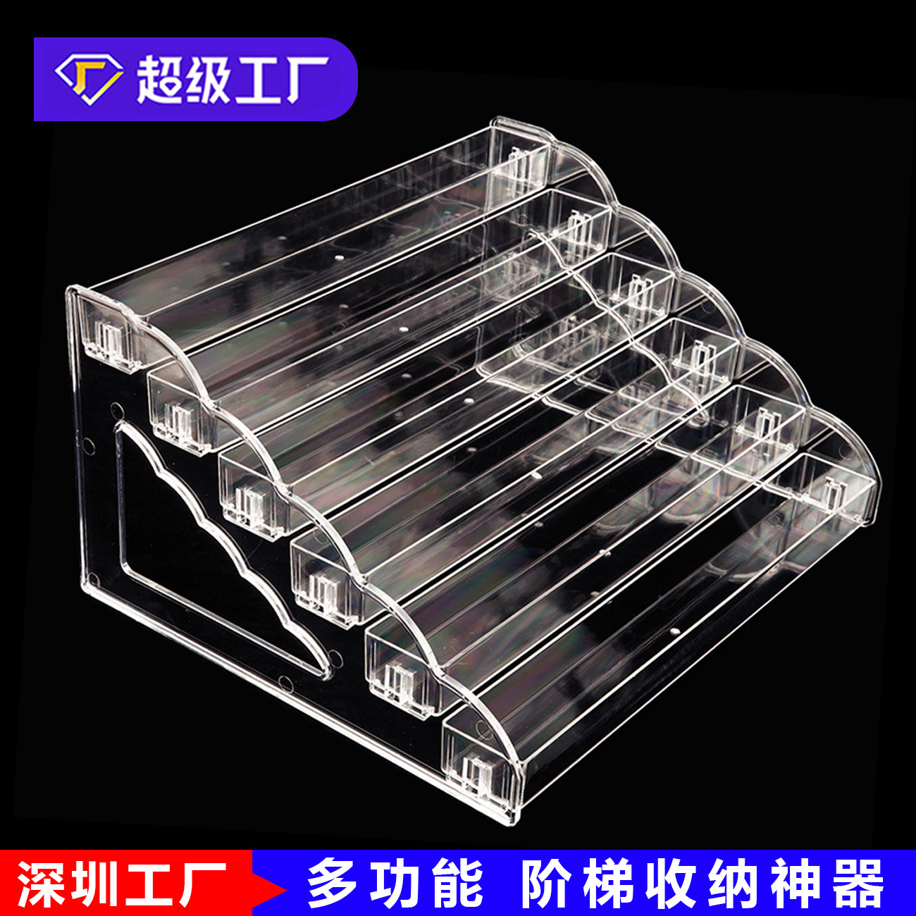 透明なバーチャルディスプレイスタンド、ネイルサロン用マニキュア段付き収納ラック、口紅ボックス、フィギュア収納ラック、ディスプレイキャビネット