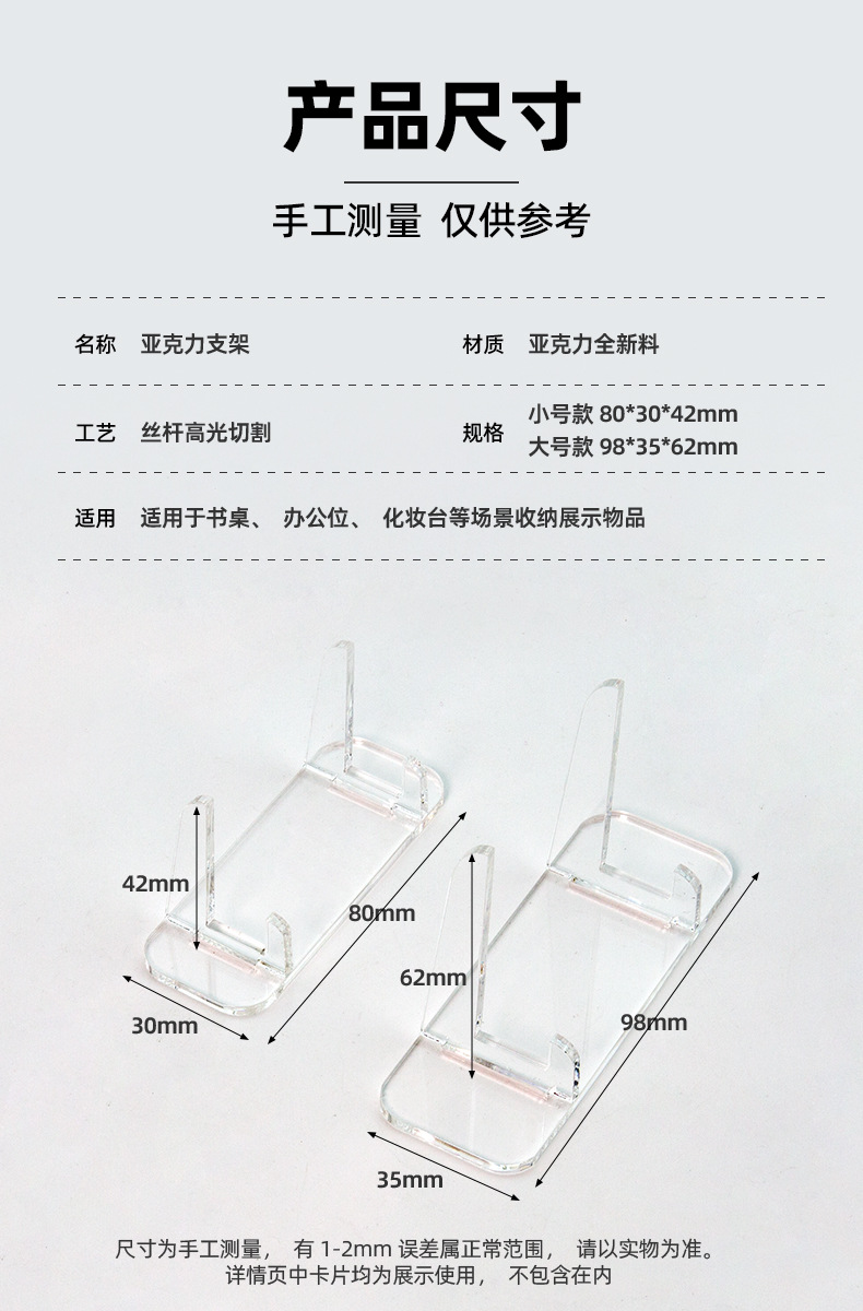 亚克力吧唧支架卡框底座吧唧托小桌面色纸卡砖卡套谷美收纳展示架