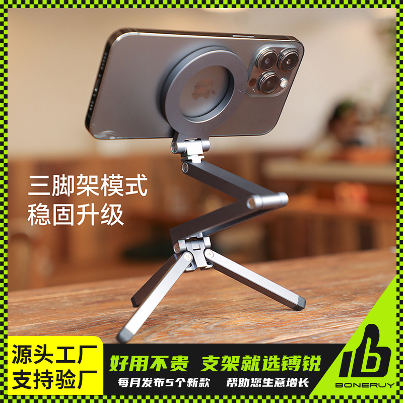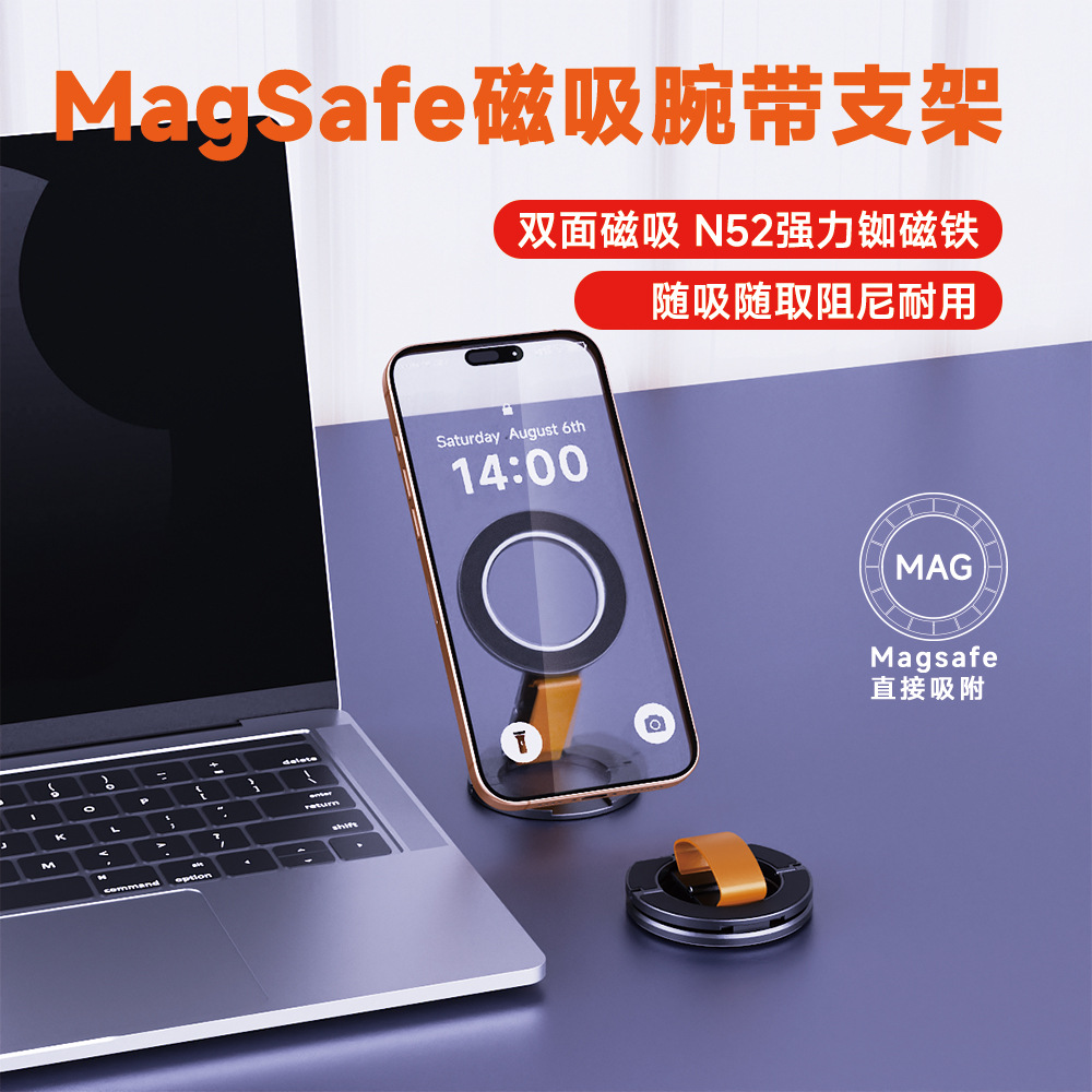 铝合金手机支架便携式MagSafe磁吸腕带铝制双面磁吸旋转折叠支架