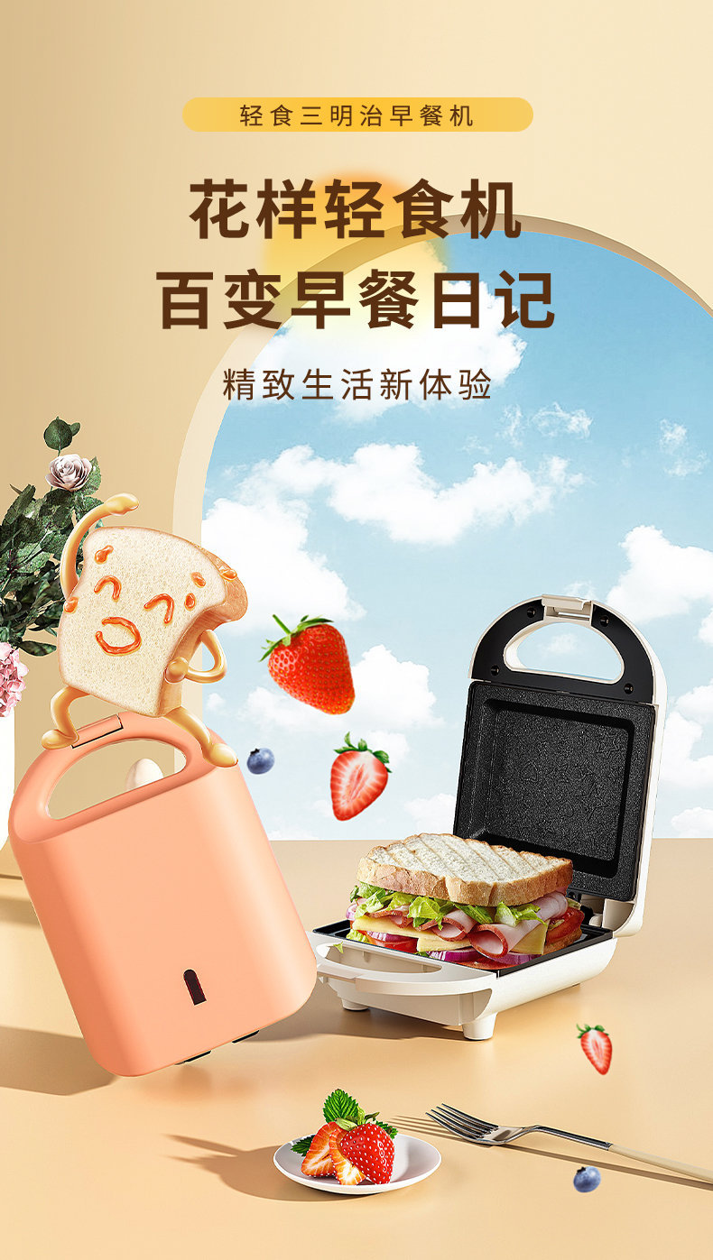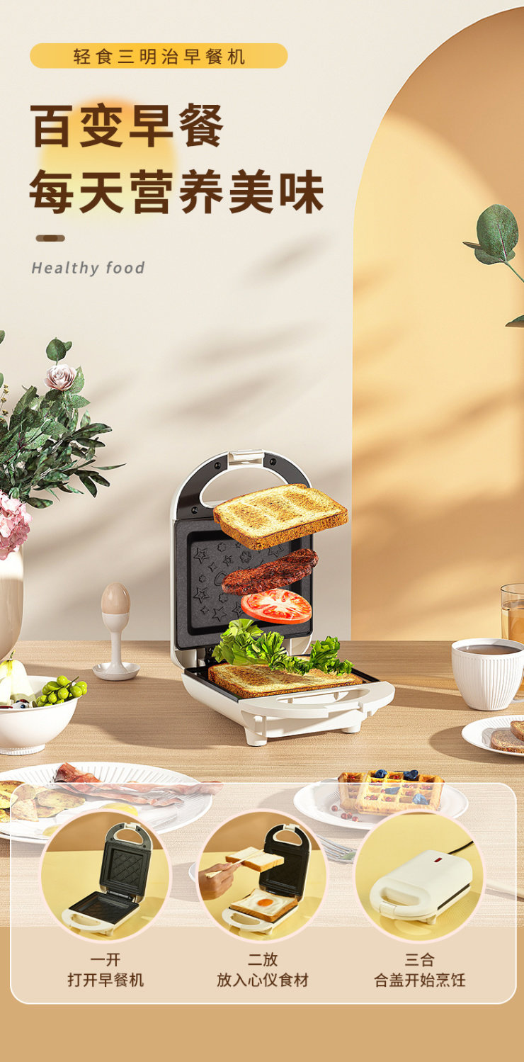 新しい家庭用朝食マシンサンドイッチマシン軽食小型多機能トースター電気パン焼き機卸売