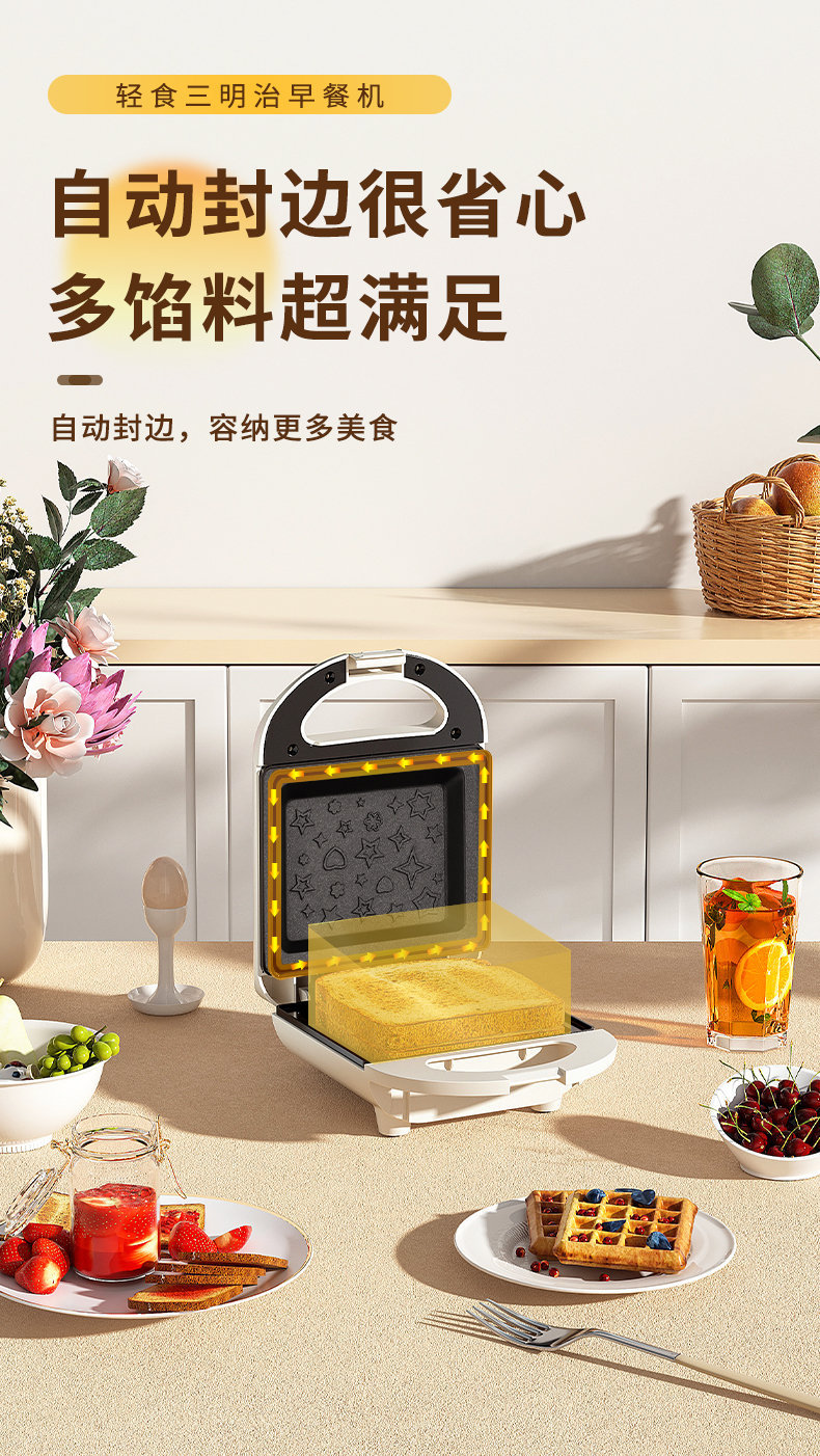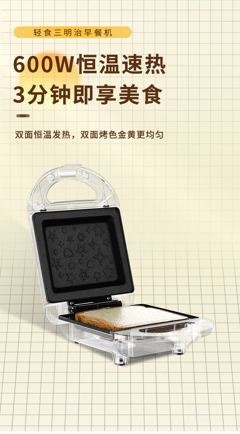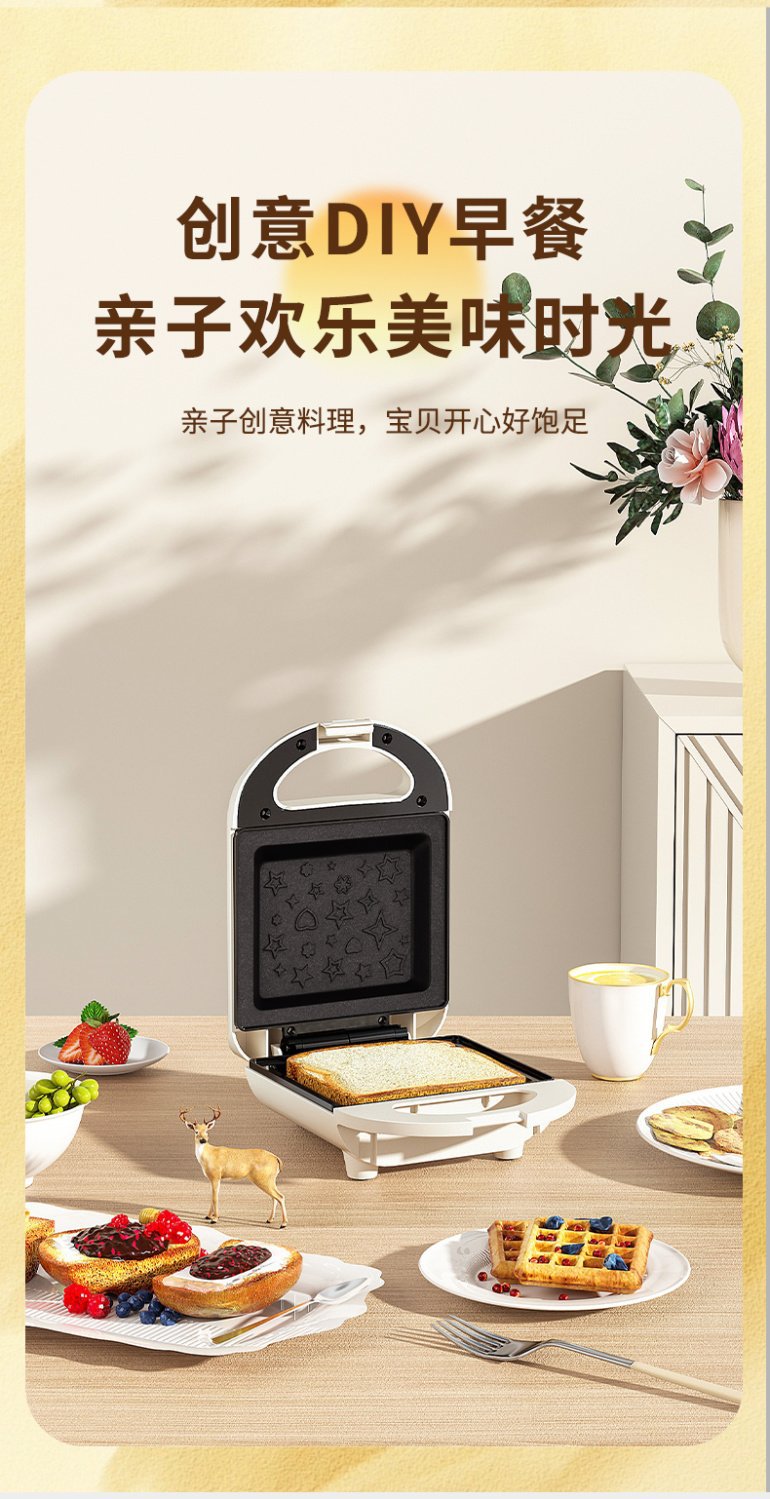 跨境三明治机烤面包机家用华夫饼机吐司机电饼铛小型三明治早餐机