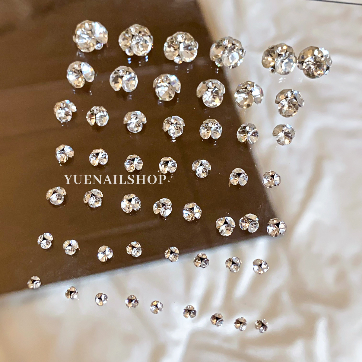 爆闪无底托成品堆水钻球美甲饰品大小号透白穿戴指甲成品装饰配件