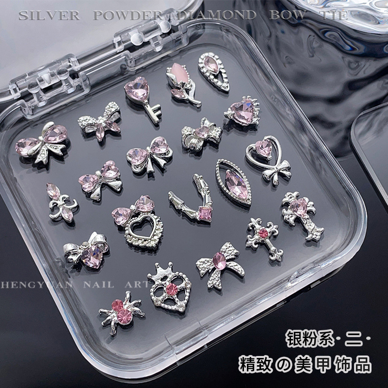 人気のリボンネイルアートアクセサリー、ライトラグジュアリーガーリーピンクダイヤモンド合金クロスラブキーネイルデコレーションアクセサリー