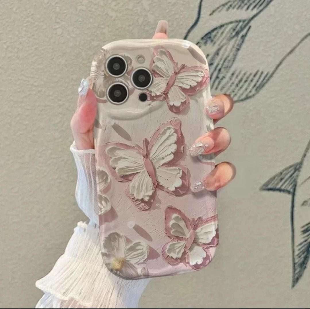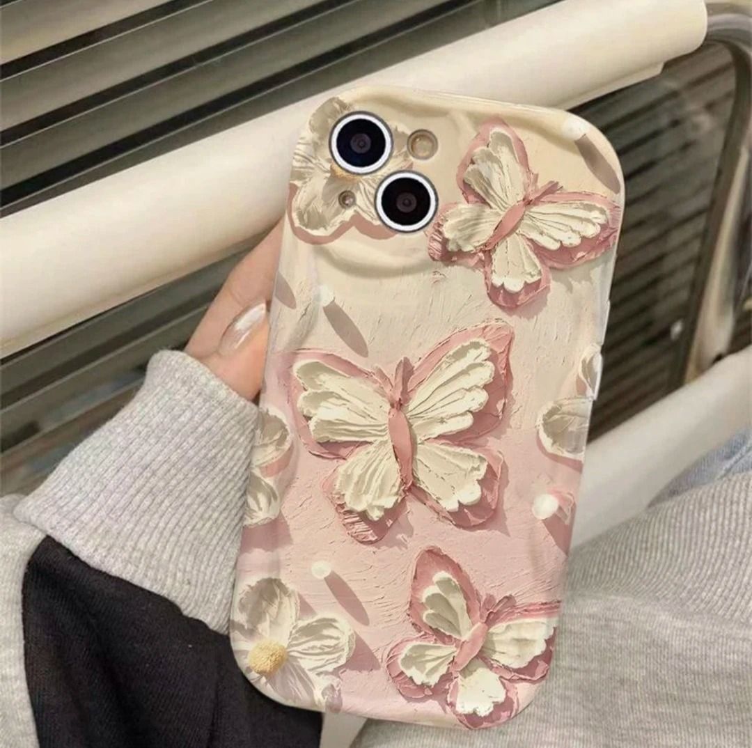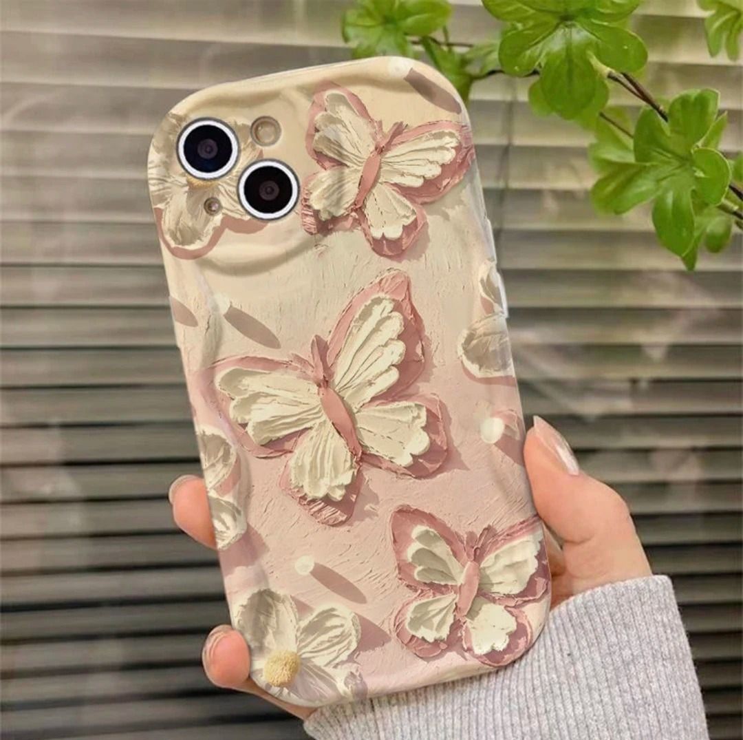 油画蝴蝶适用于苹果16PROMAX手机壳iPhone15个性14全包13软壳12/x