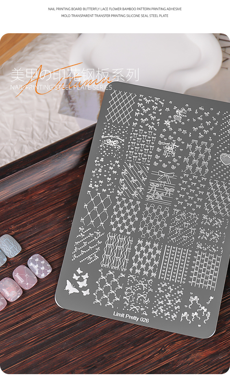ネイルプリント鋼板金型レース蝶薔薇花卉リボン蝶蝶蝶蝶ネクタイ転写工具シリコン印鑑