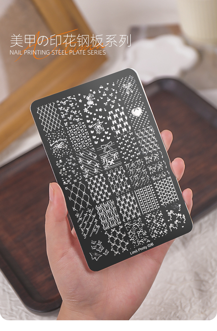 クロスボーダーネイルアートスチールプレート、ネイルアートボード転写接着スチールプレート、バタフライメッシュレース、フレンチチェック柄プリントネイルアートツール