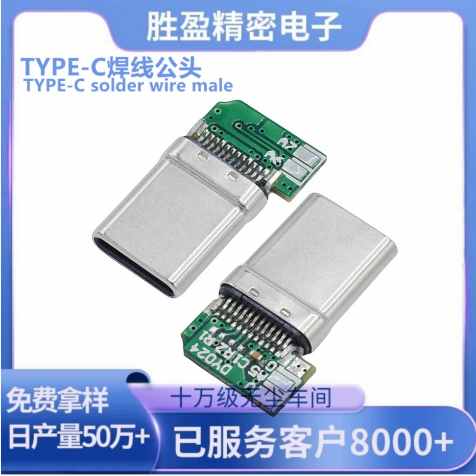 TYPE-C2P溶接線母座全プラスチック注入ヘッドバンド電子線type-c防水コネクタコネクタ