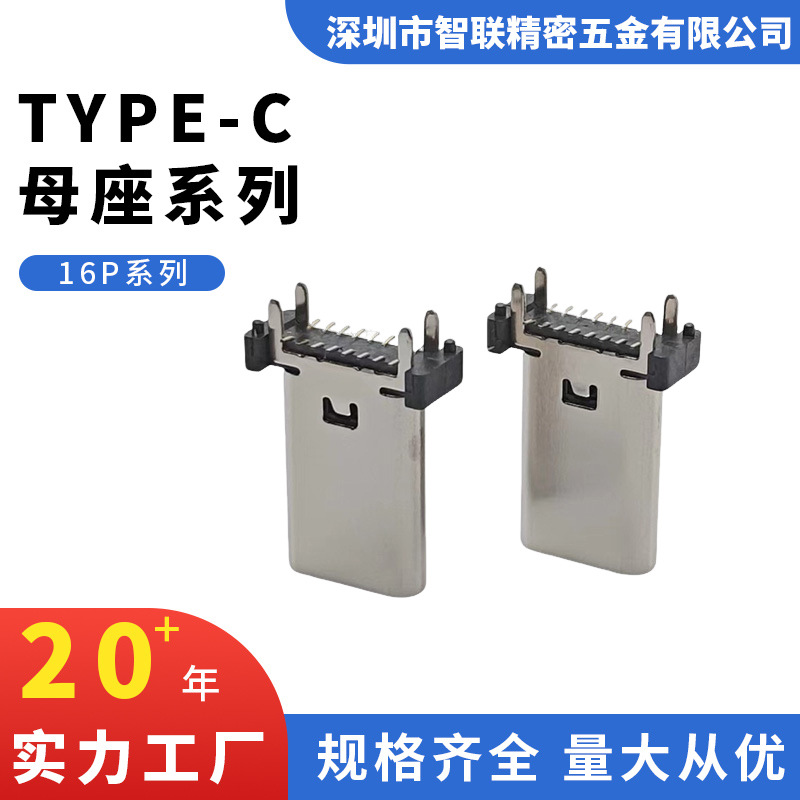 type-c16P母座立贴加高立插加长13.0/13.7/15.0/16.5/17.5/18.5mm
