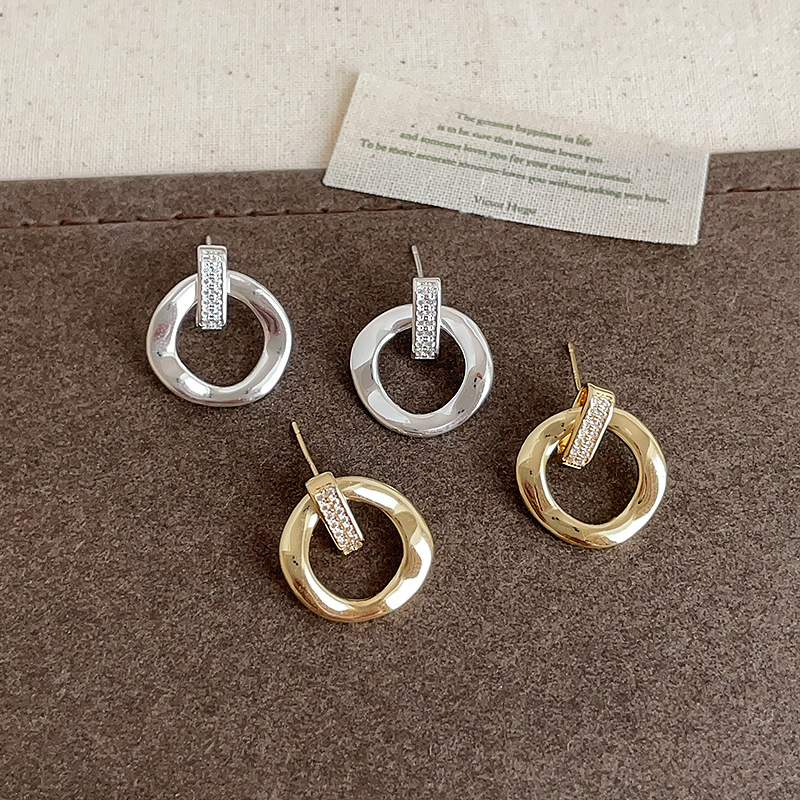 几何光面圆圈微镶锆石耳钉女小众设计感个性精致时尚潮流耳环耳饰