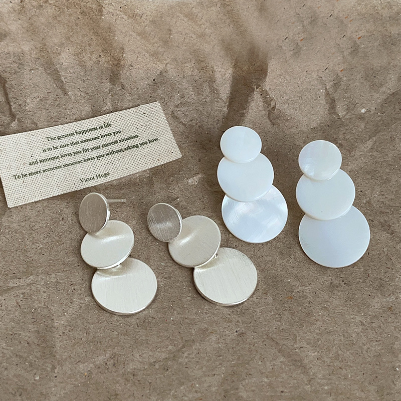 高级感三层拉丝圆片贝壳耳钉女轻奢质感独特时尚潮流百搭耳环耳饰