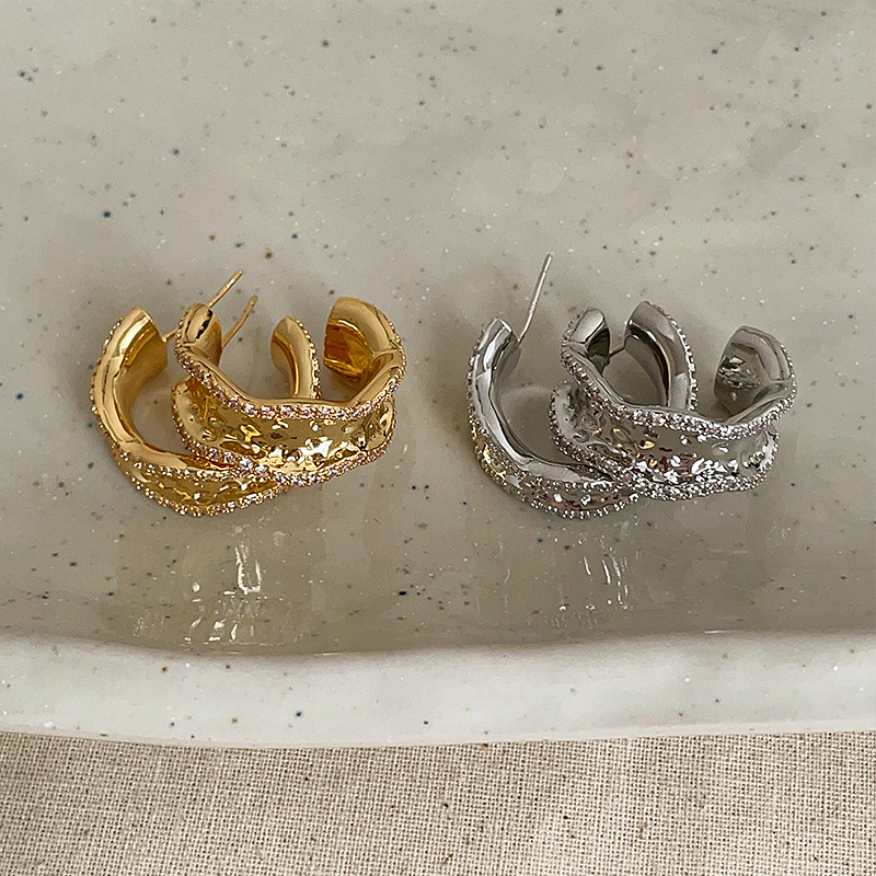 欧美个性镶钻C圈耳钉女小众高级感轻奢时尚潮流通勤百搭耳环耳饰